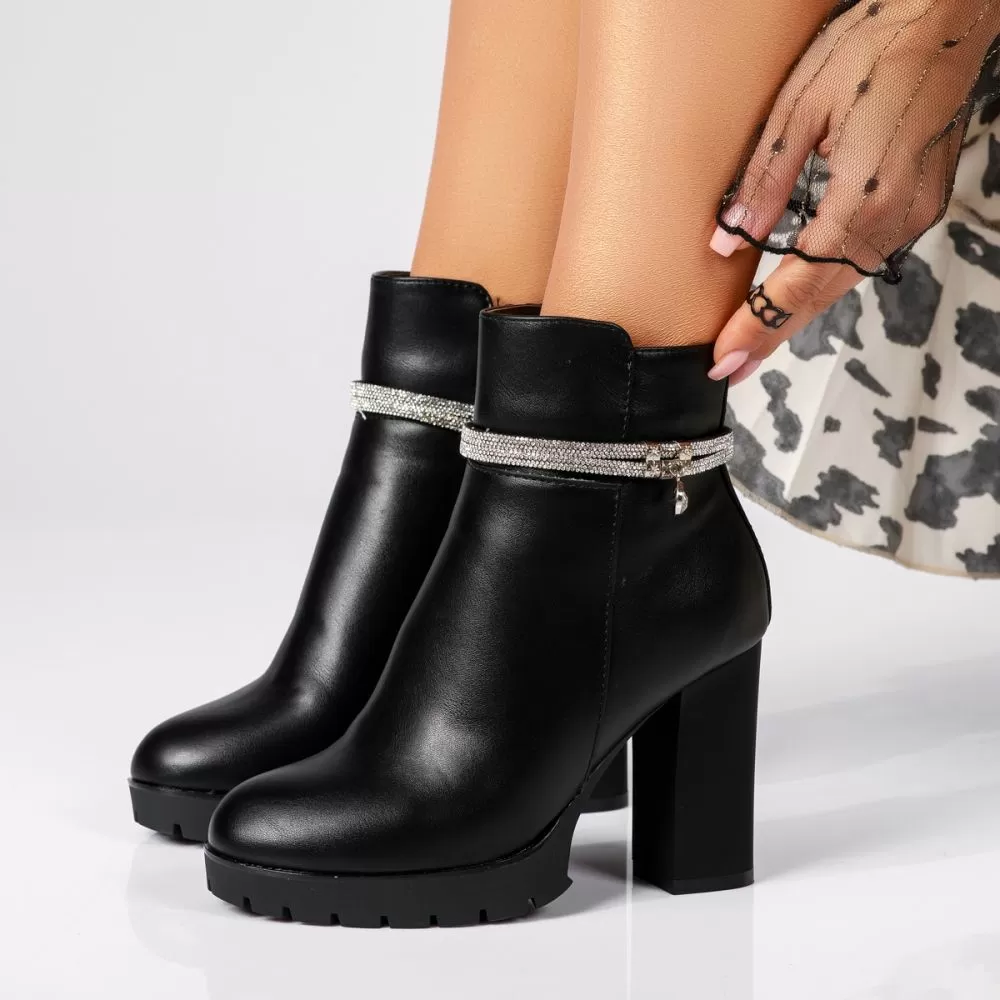 Botine dama îmblanite negre din piele ecologica Belinda #22826