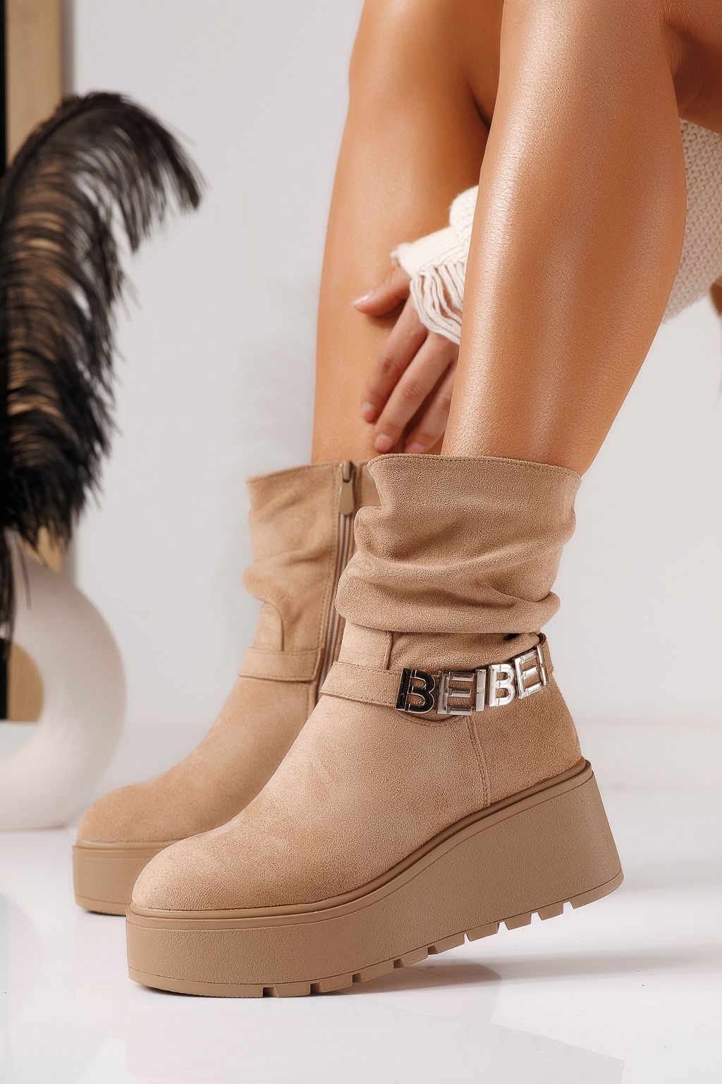 Prima pagină Incaltaminte dama Ghete dama Ghete Dama îmblanite cu Platforma Lucia Khaki #17669