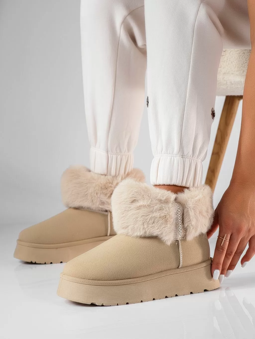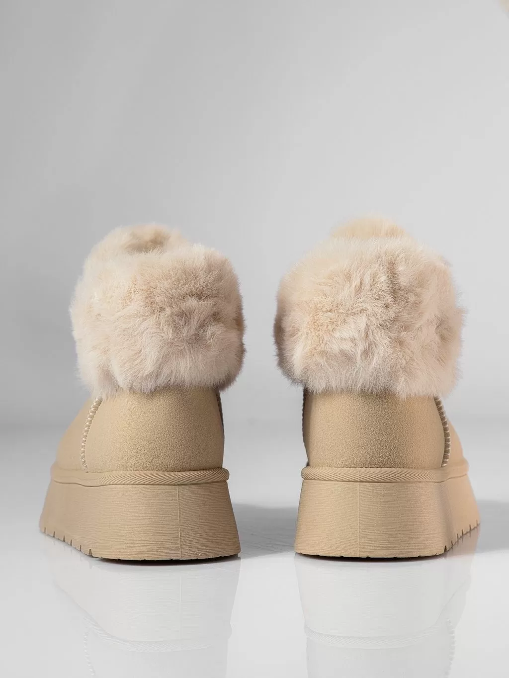 Cizme scurte îmblanite dama bej din piele ecologica intoarsa Blanca #20275