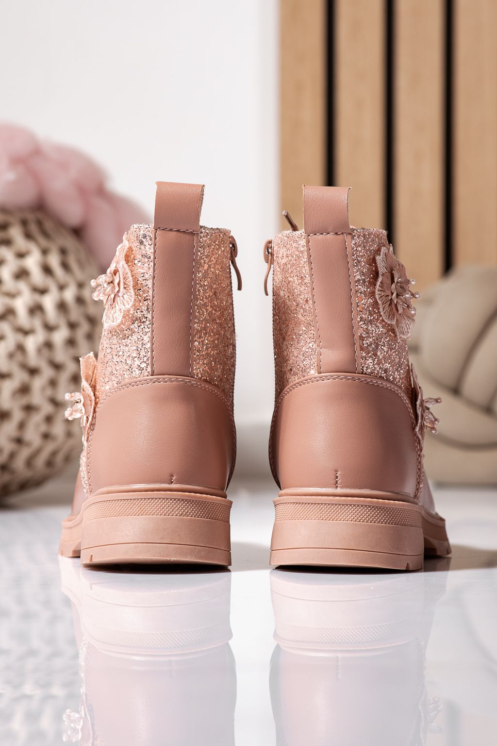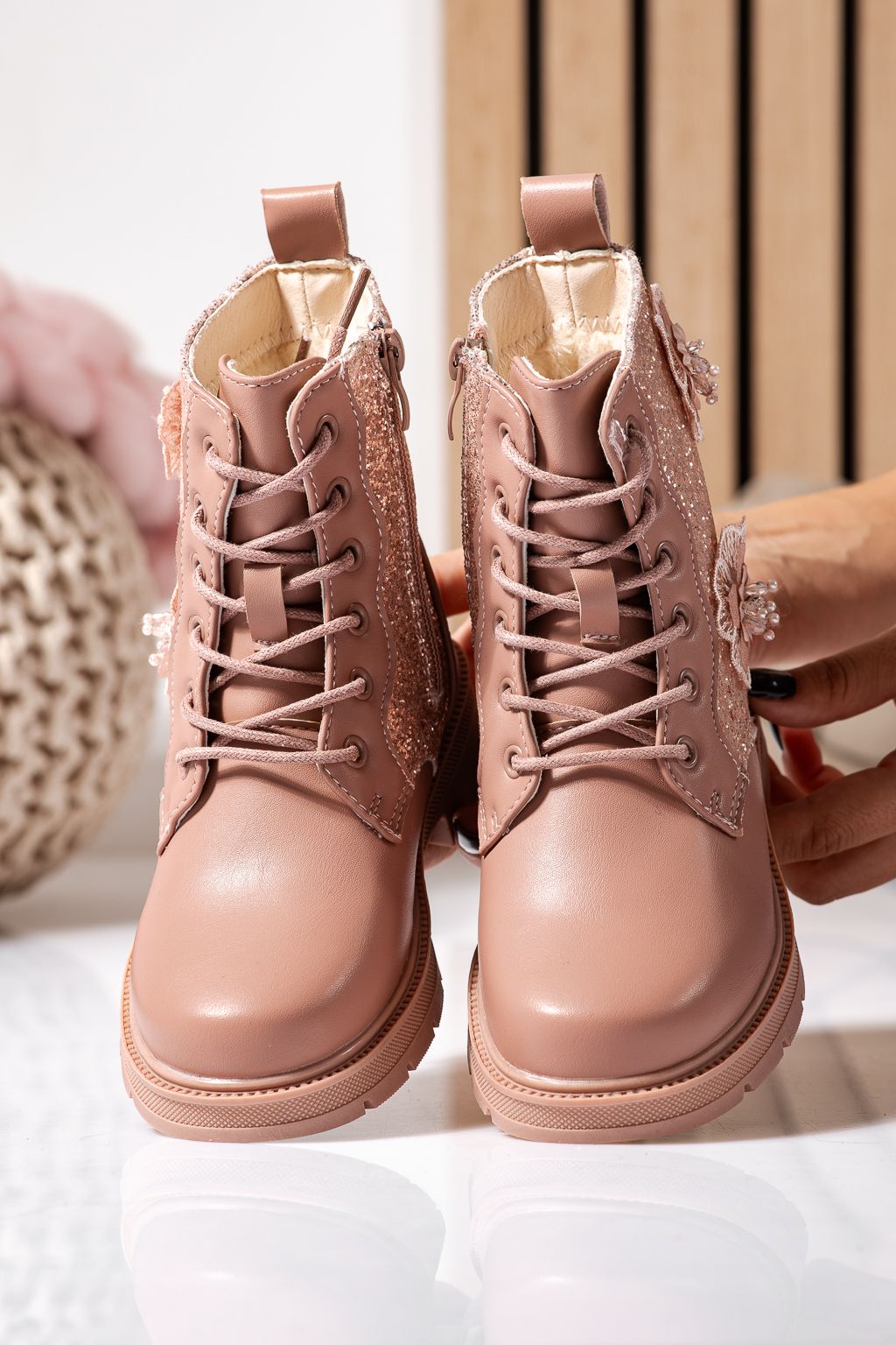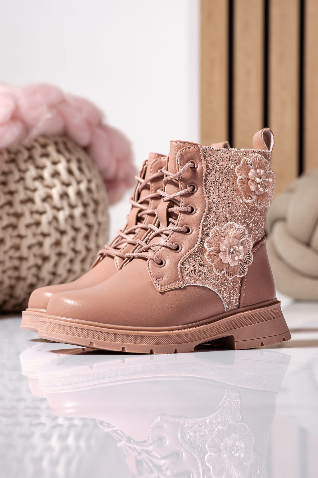 Prima pagină Incaltaminte dama Incaltaminte Copii Ghete copii Ghete fete imblanite roz din piele ecologica Marina #22551