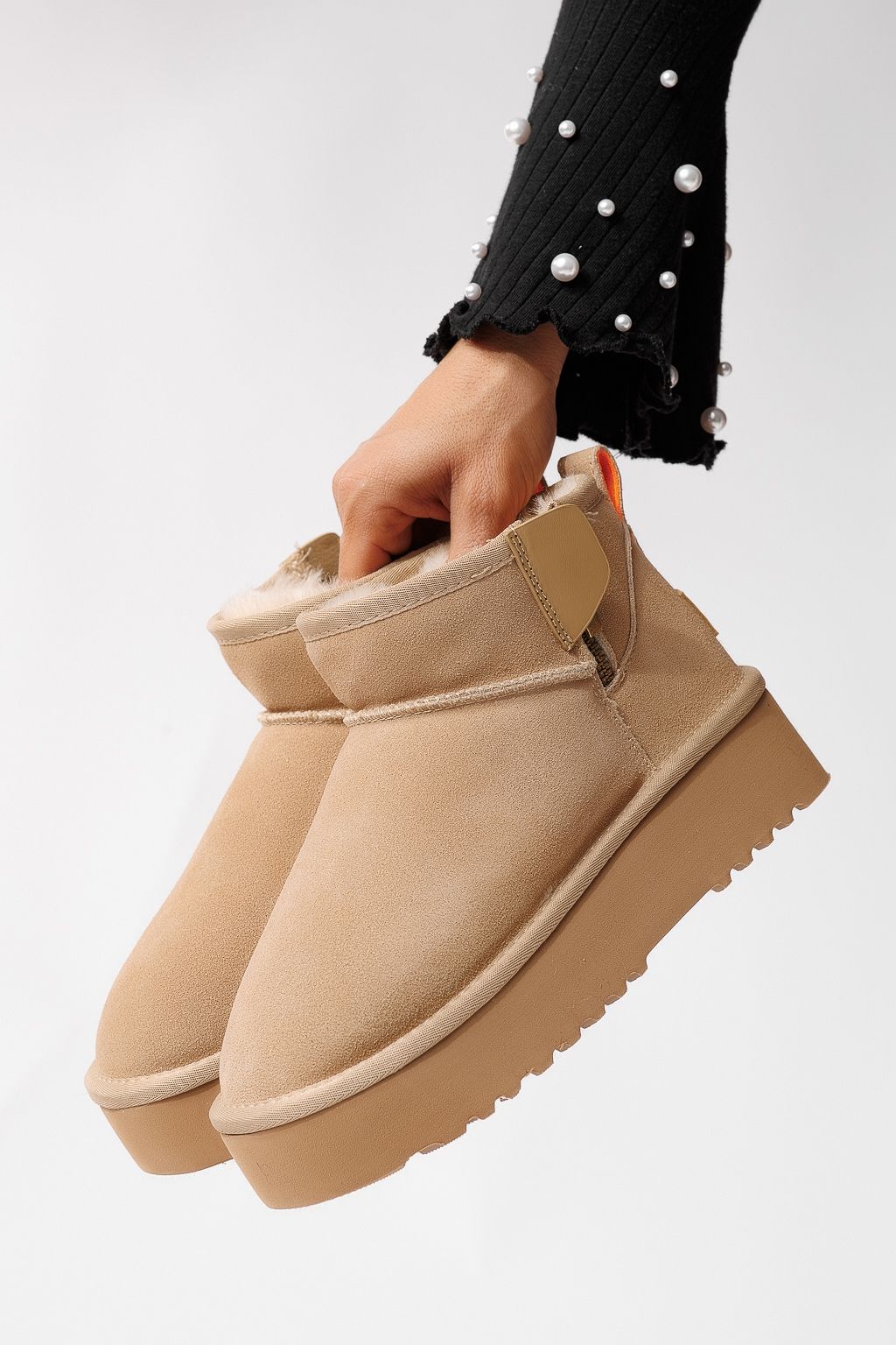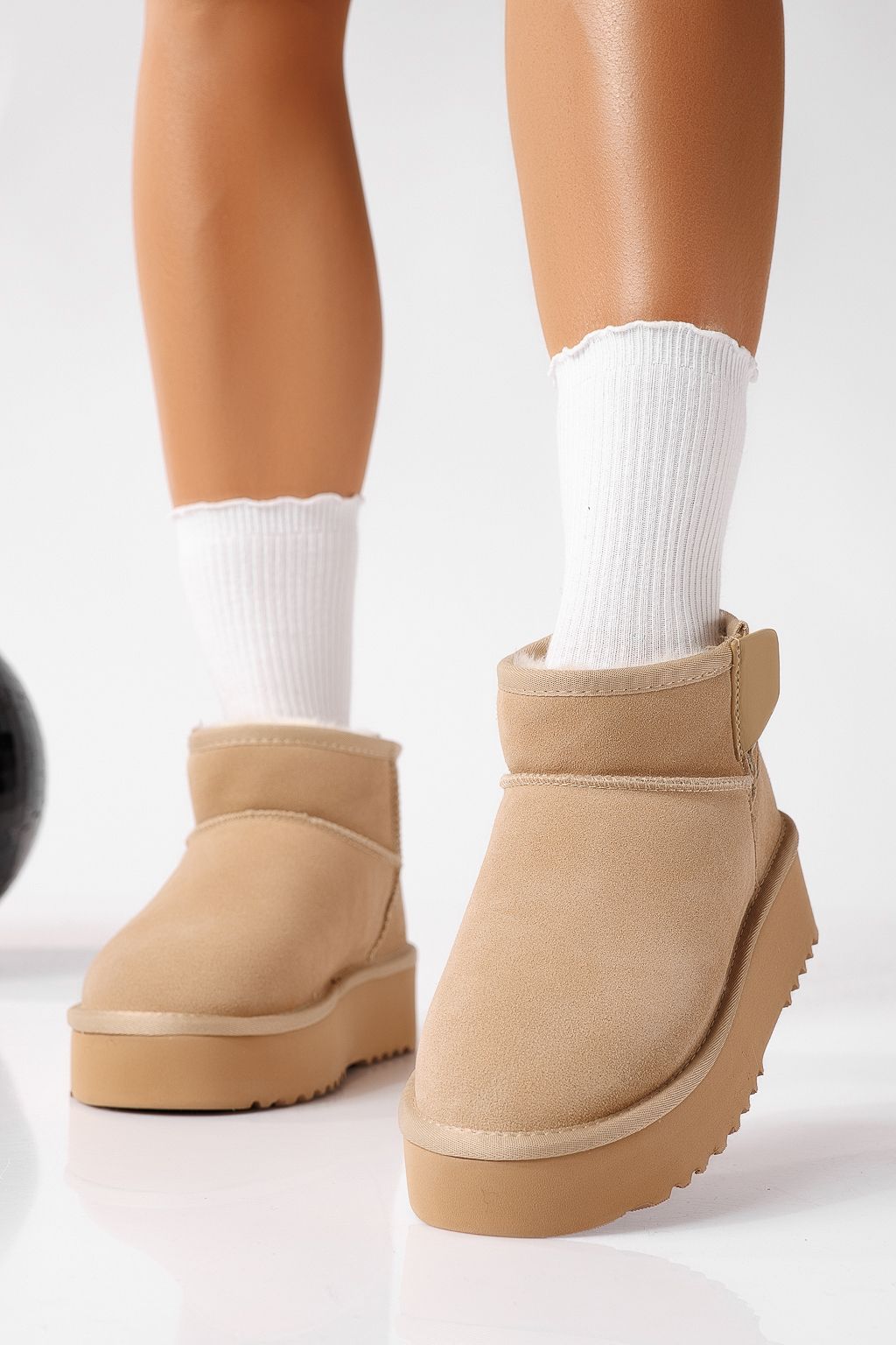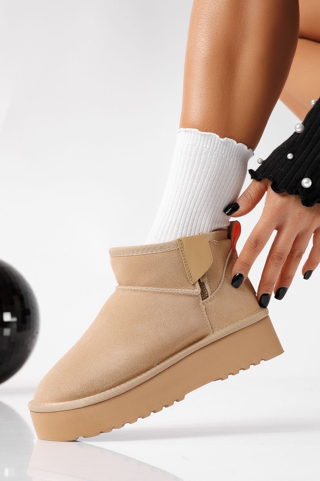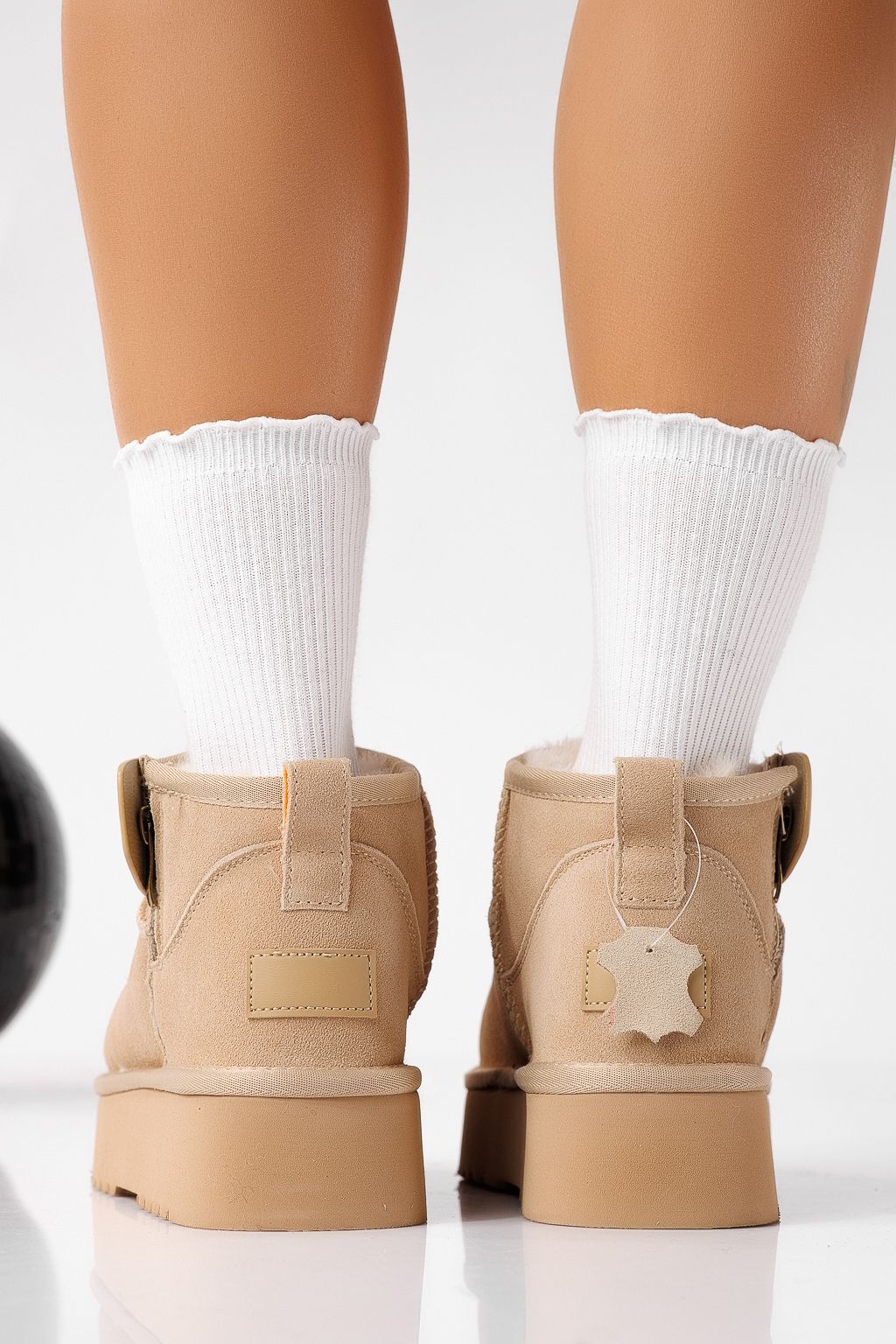 Cizme scurte dama imblanite tip Ug bej din piele naturala intoarsa Carolina #22631