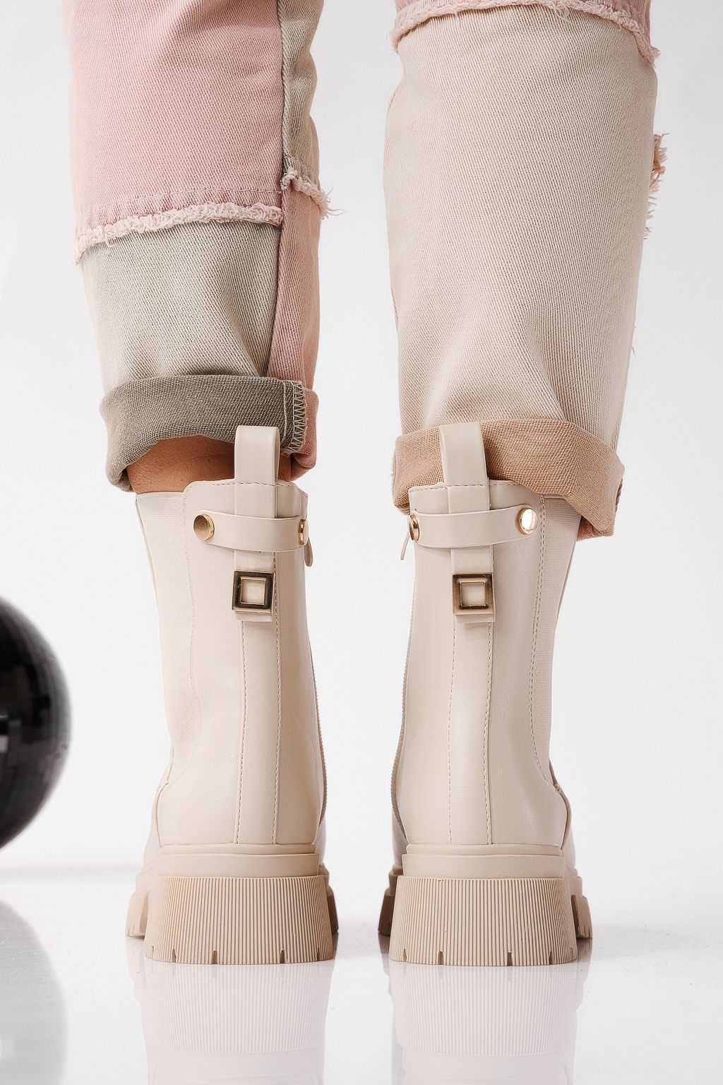 Ghete dama îmblanite bej din piele ecologica Aurora #22635