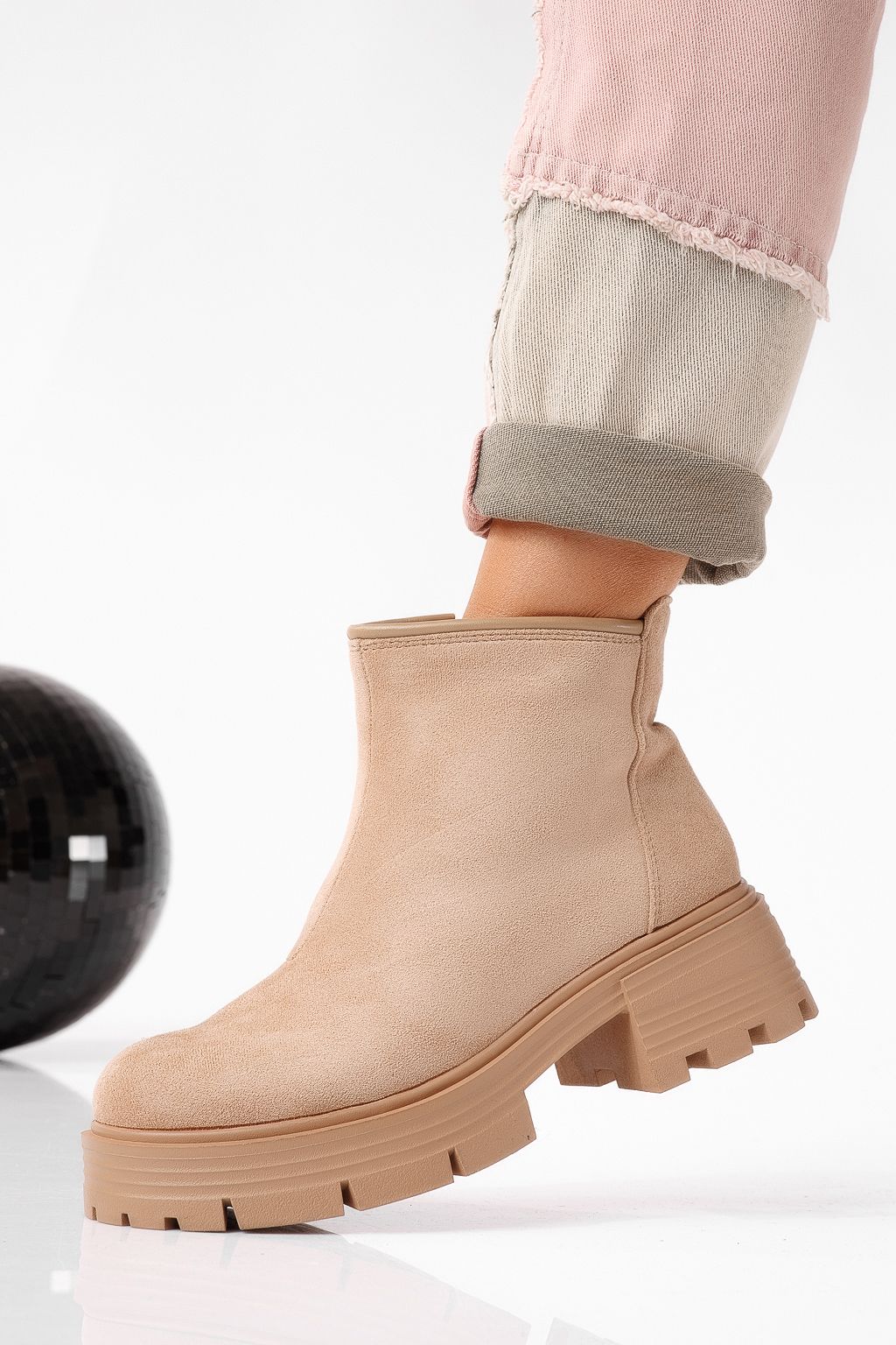 Ghete dama îmblanite khaki din piele ecologica intoarsa Adelina #22640