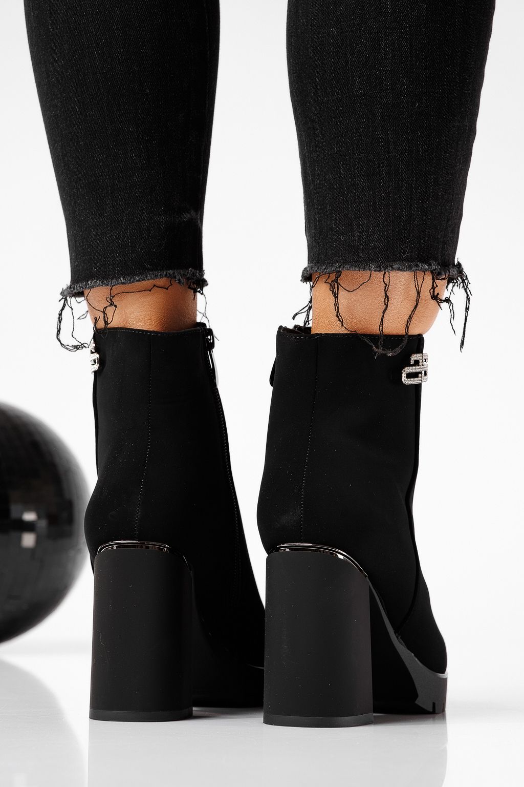 Botine dama îmblanite negre din piele ecologica Alba #22642