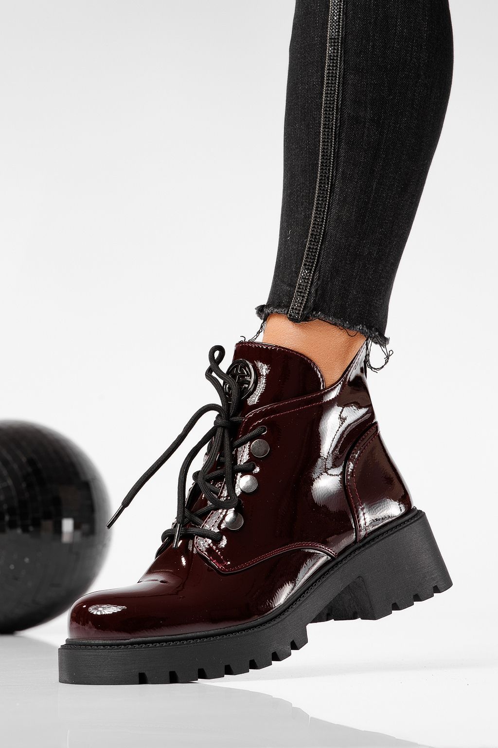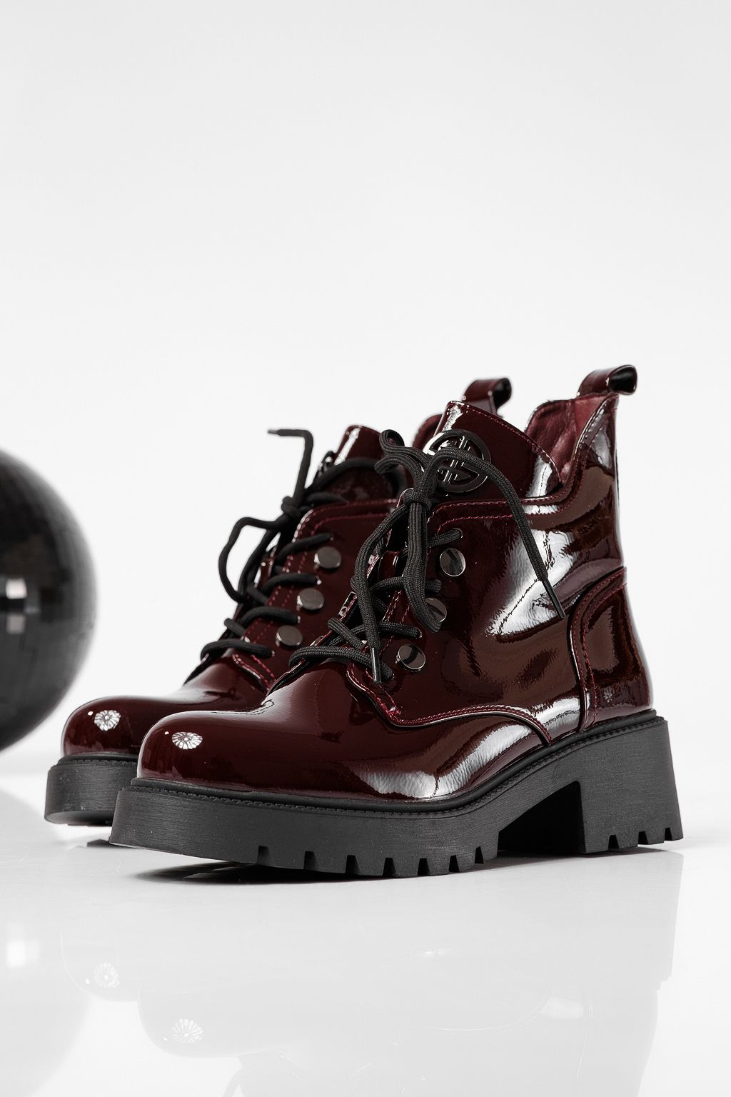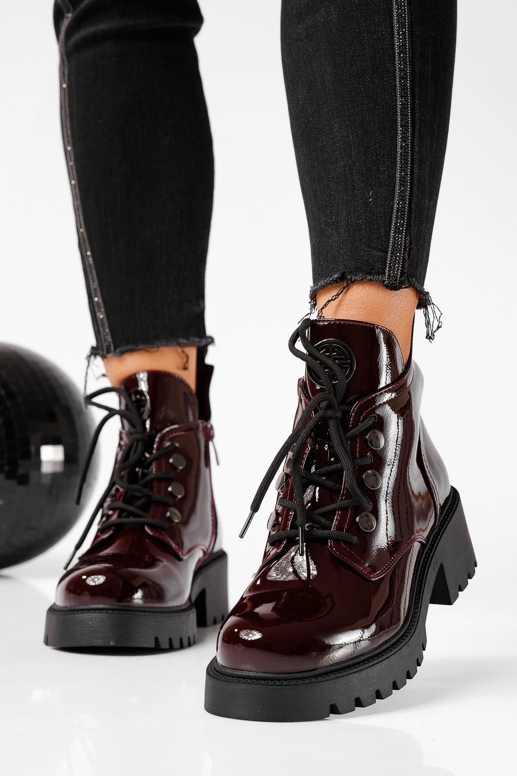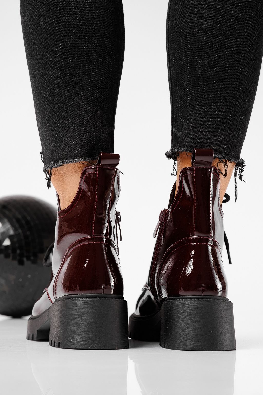 Ghete dama vatuite bordo din piele ecologica lacuita Chiara #22648