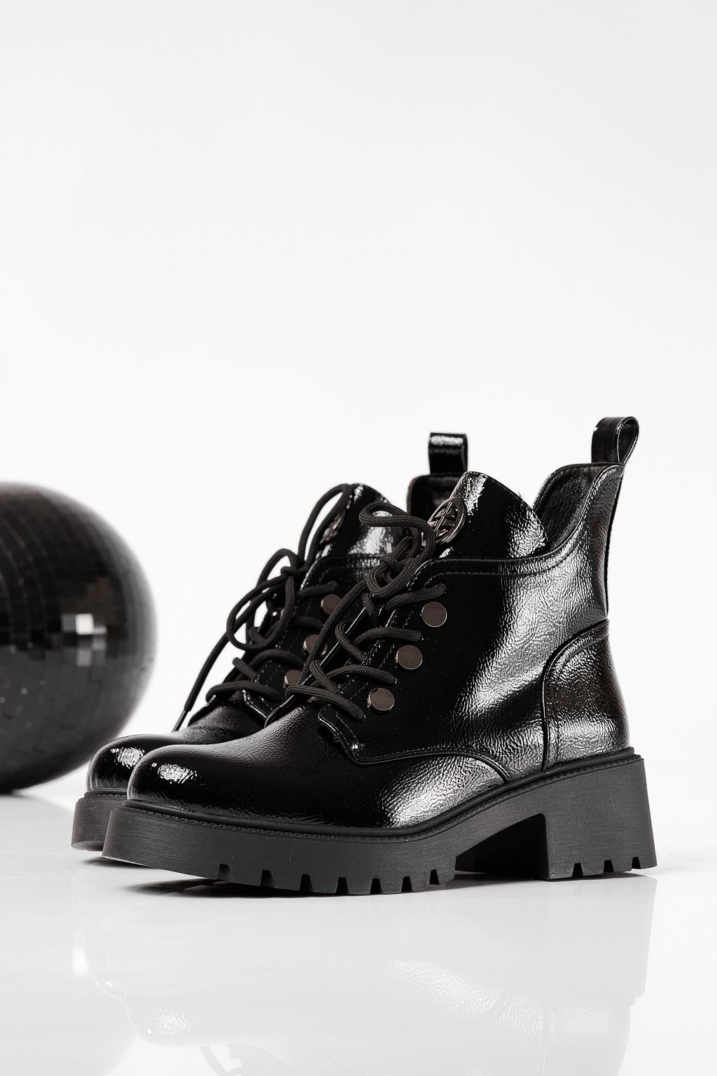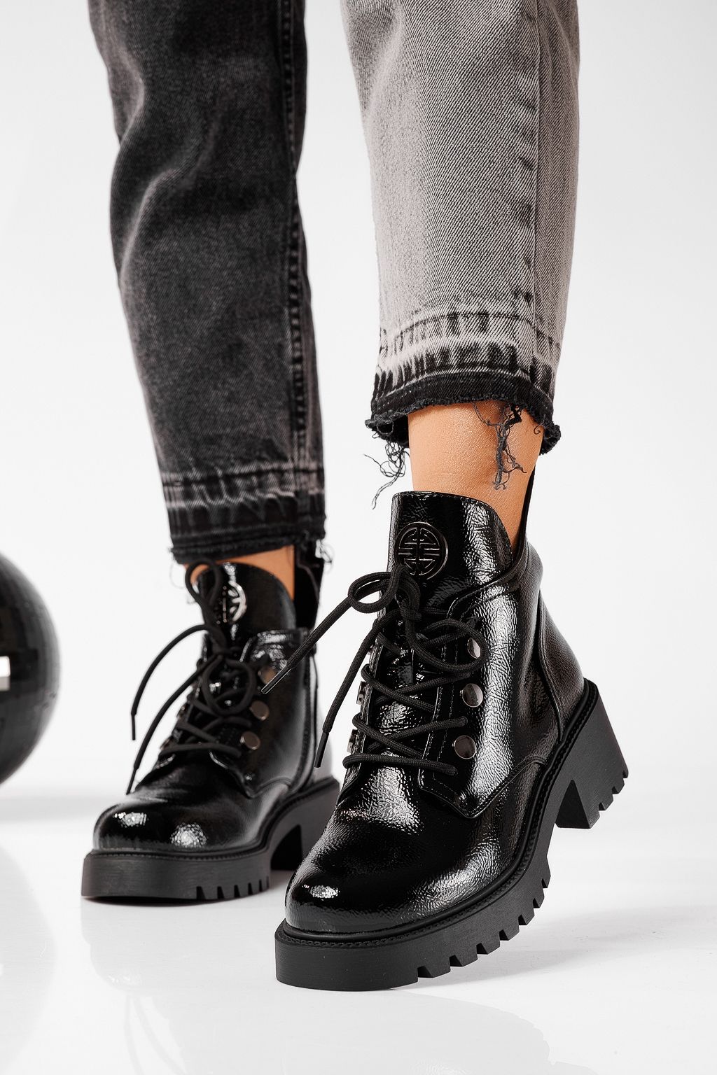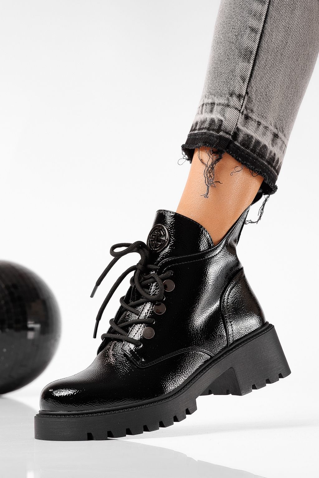 Prima pagină Incaltaminte dama Ghete dama Ghete de iarna Ghete dama vatuite negre din piele ecologica lacuita Chiara #22649