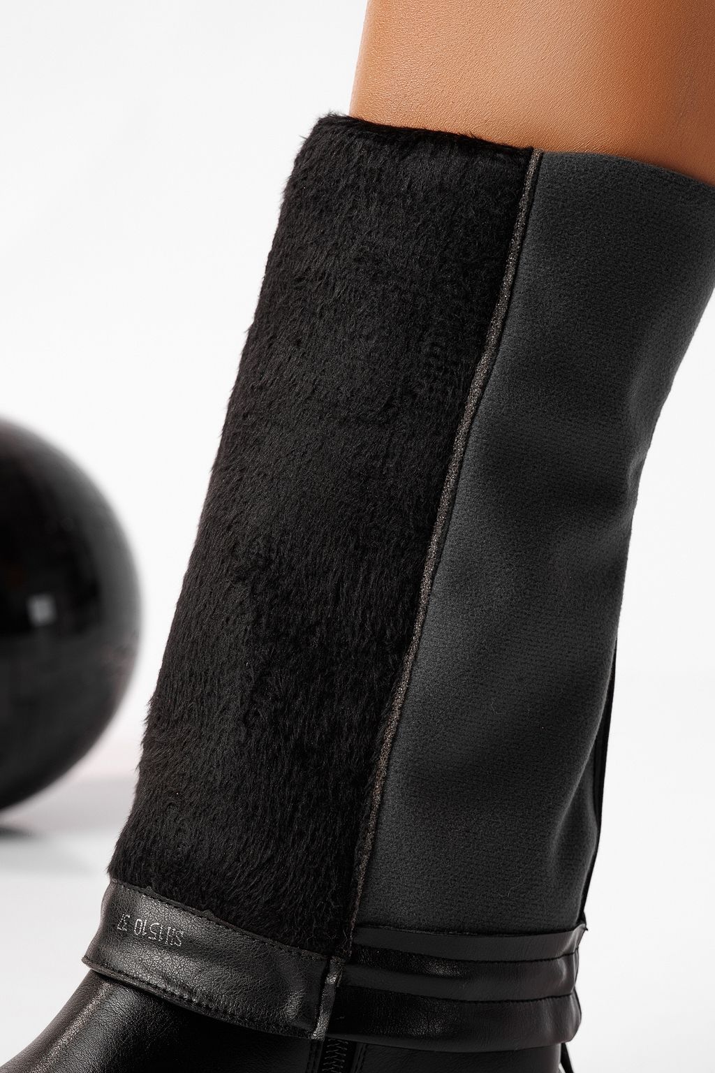 Cizme lungi dama vatuite negre din piele ecologica Ellis #22655