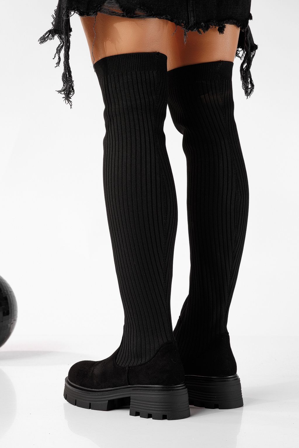 Cizme lungi dama îmblanite negre din piele ecologica intoarsa Iris #22656