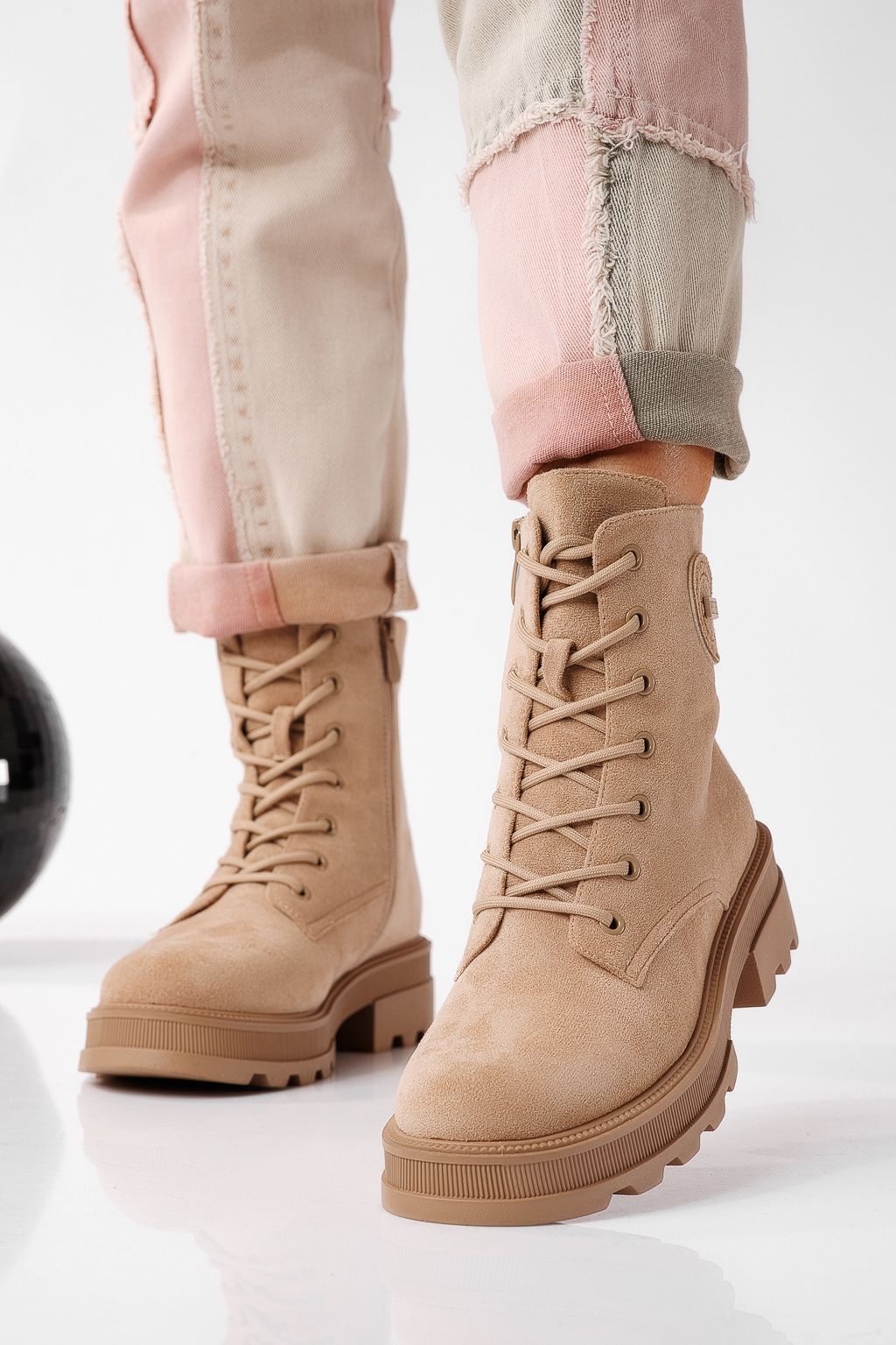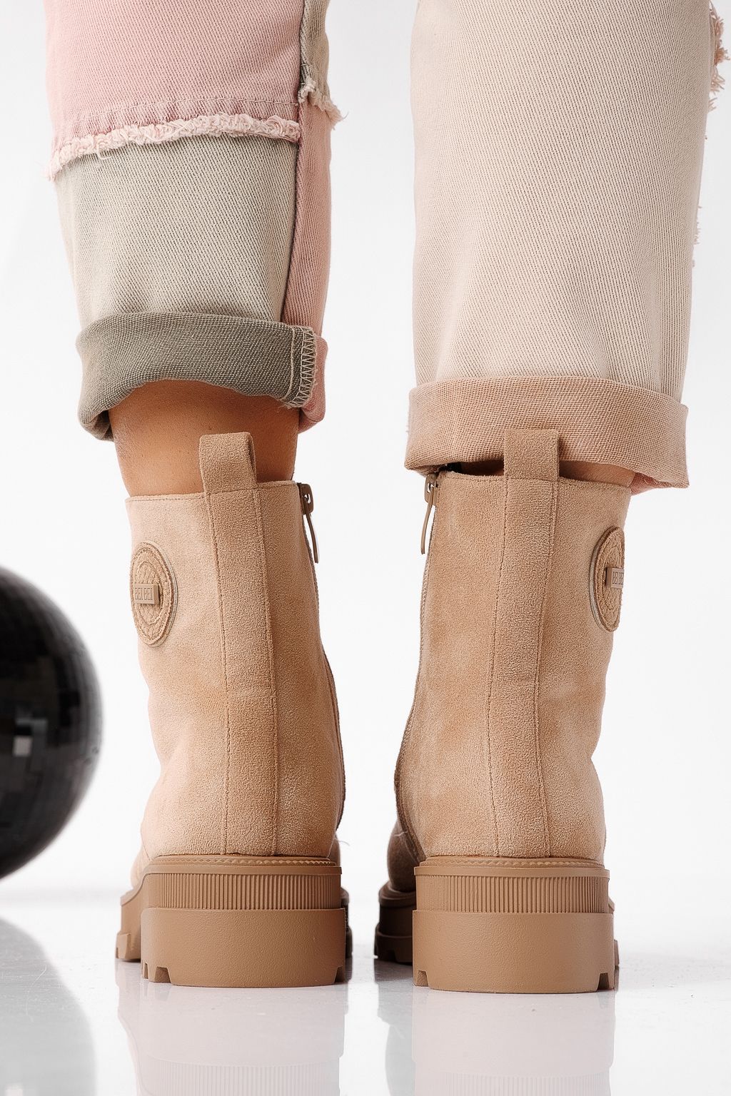 Ghete dama îmblanite khaki din piele ecologica intoarsa Isabella #22659