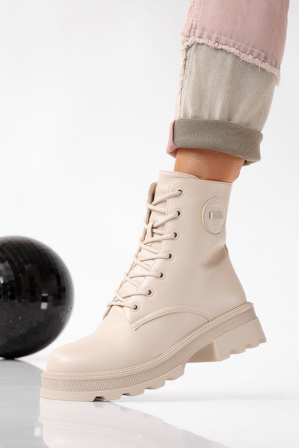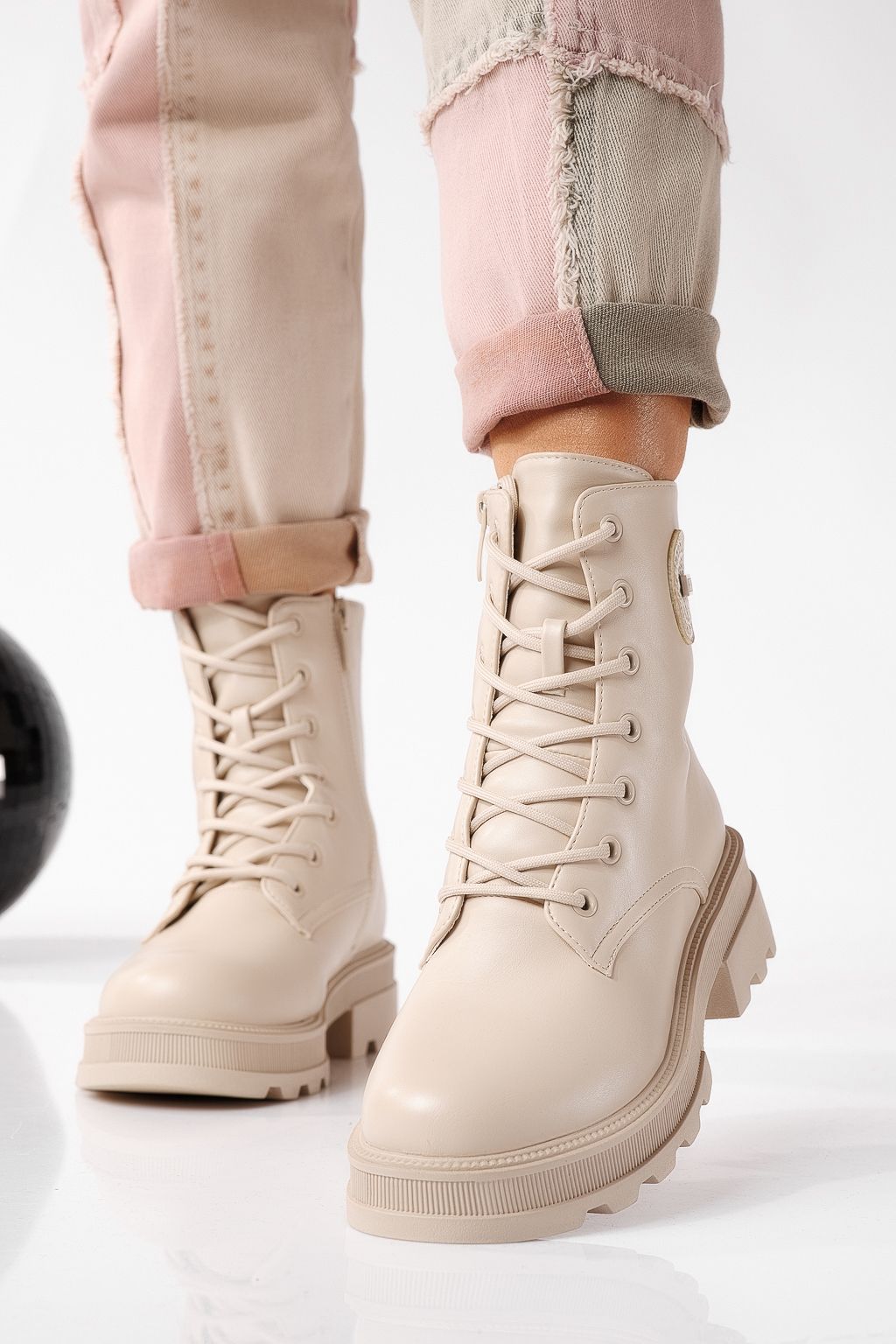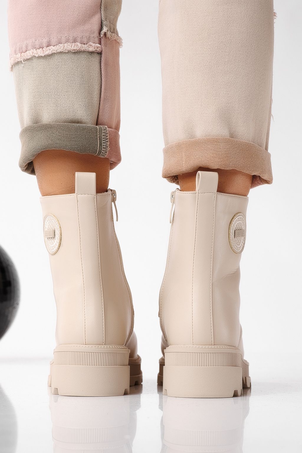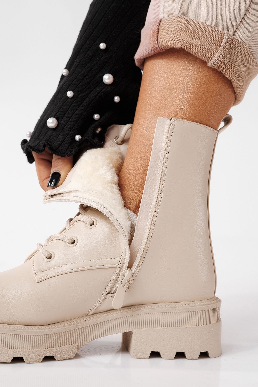 Ghete dama îmblanite bej din piele ecologica June #22660