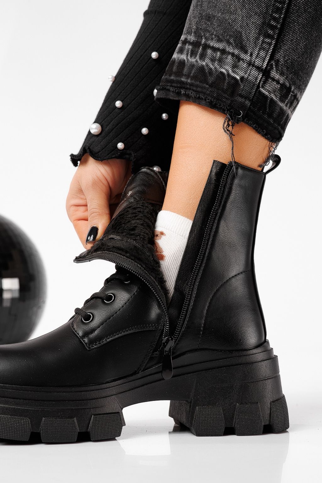 Prima pagină Incaltaminte dama Ghete dama Ghete de iarna Ghete dama îmblanite negre din piele ecologica Kiara #22664