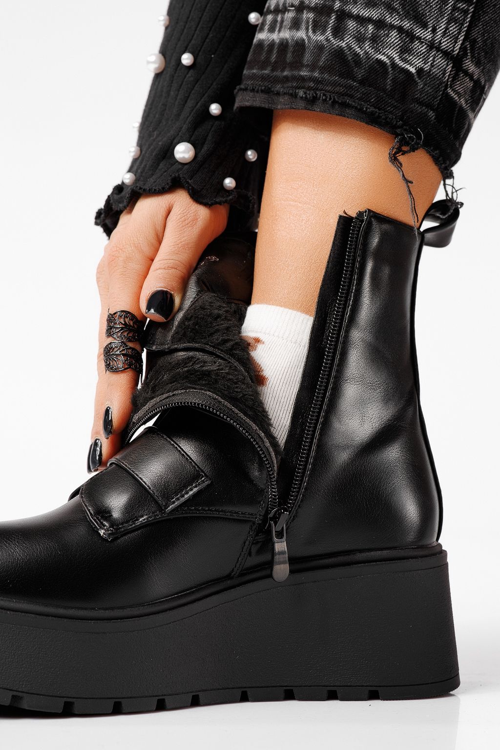 Prima pagină Incaltaminte dama Ghete dama Ghete de iarna Ghete dama îmblanite negre din piele ecologica Lumi #22666