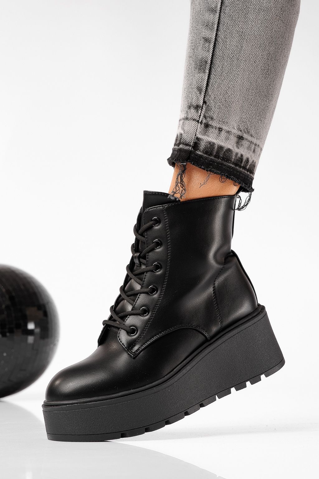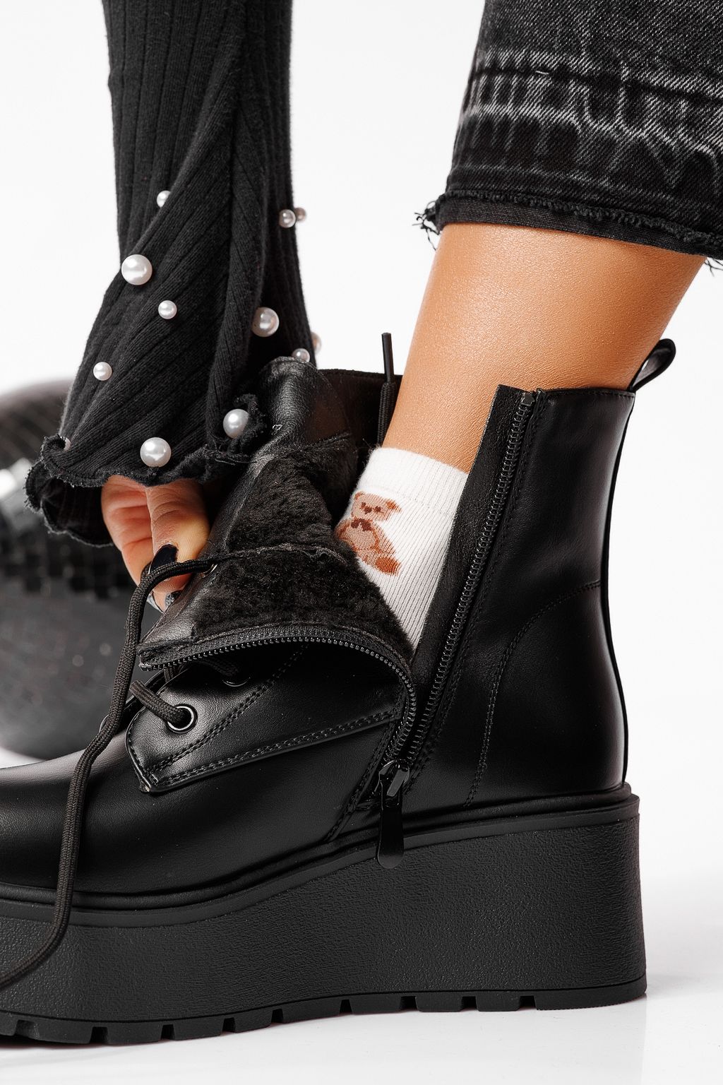 Prima pagină Incaltaminte dama Ghete dama Ghete de iarna Ghete dama îmblanite negre din piele ecologica Lorelai #22667