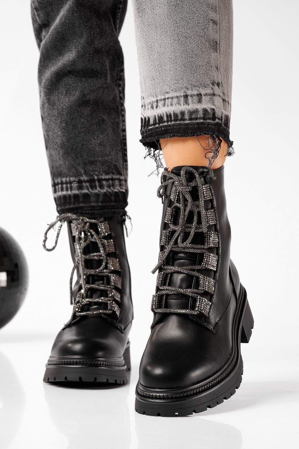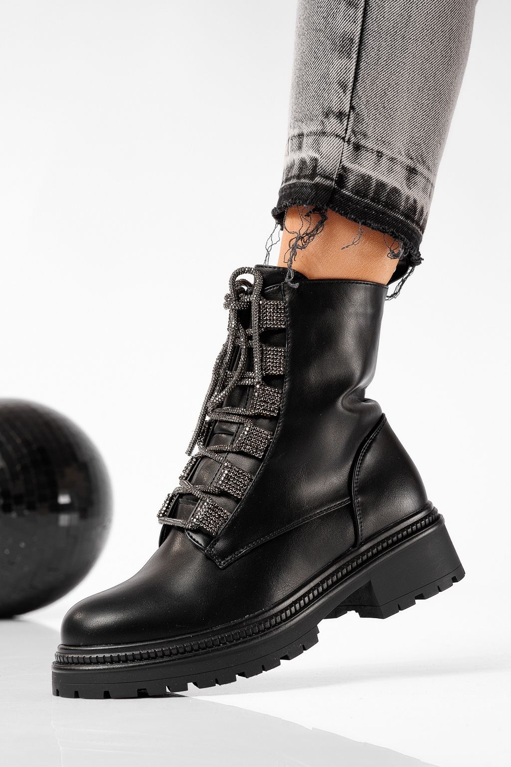 Prima pagină Incaltaminte dama Ghete dama Ghete de iarna Ghete dama îmblanite negre din piele ecologica Liana #22668