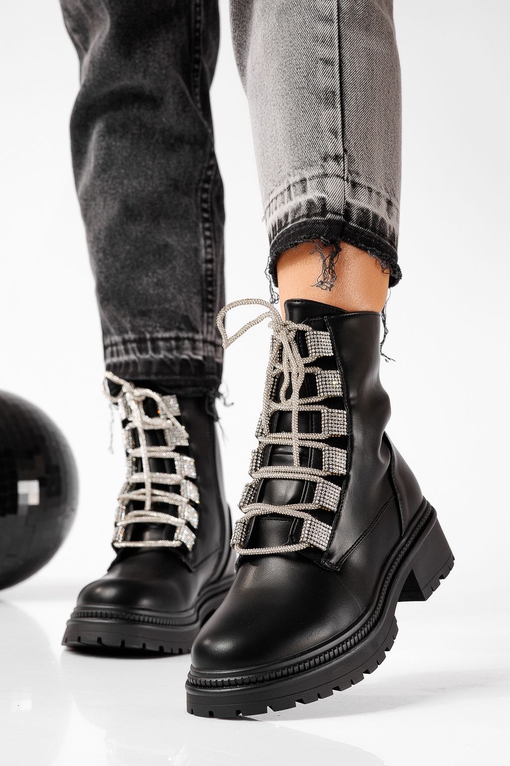 Prima pagină Incaltaminte dama Ghete dama Ghete de iarna Ghete dama îmblanite negre din piele ecologica Mia #22669