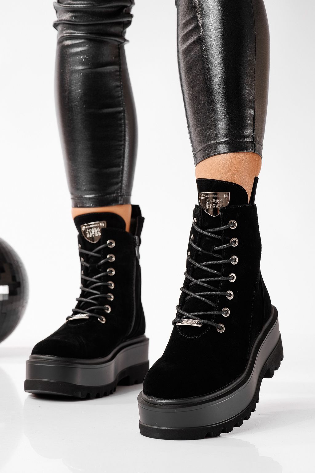 Ghete dama îmblanite negre din piele ecologica Maria #22676