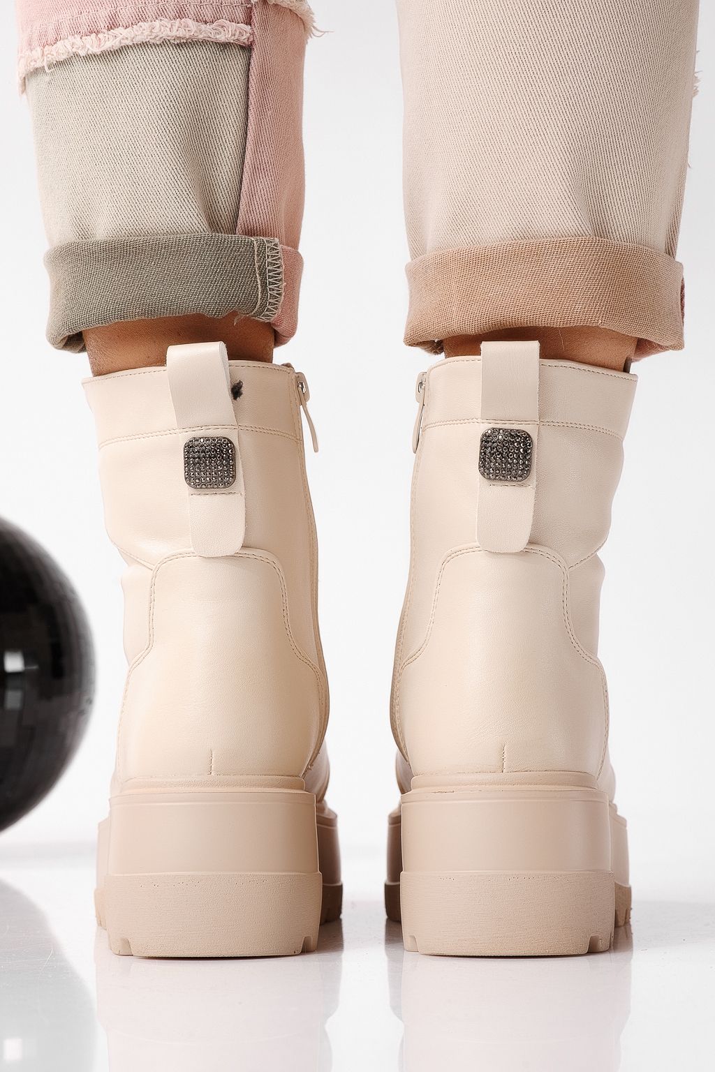 Ghete dama îmblanite bej din piele ecologica Ioana #22681