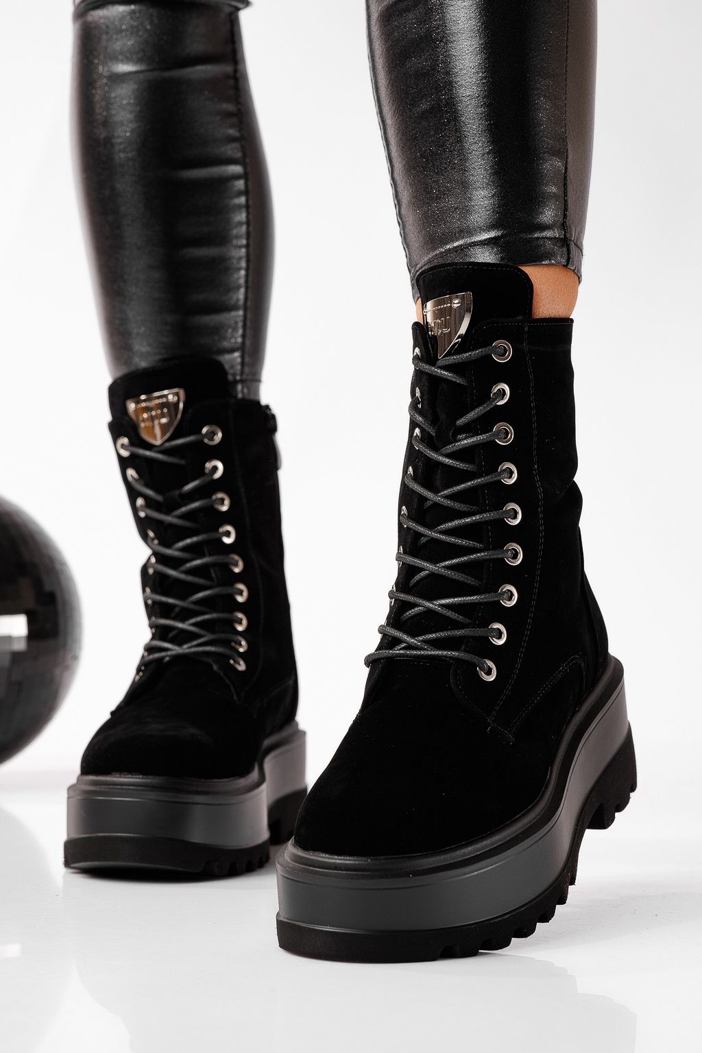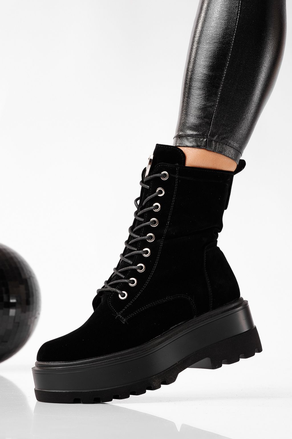 Ghete dama îmblanite negre din piele ecologica Olivia #22686
