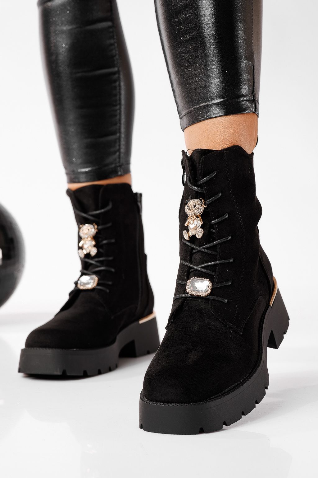 Prima pagină Incaltaminte dama Ghete dama Ghete de toamna Ghete dama îmblanite negre din piele ecologica intoarsa Narcisa #22704