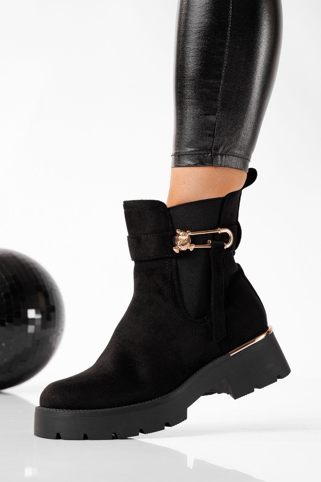 Prima pagină Incaltaminte dama Ghete dama Ghete de toamna Ghete dama îmblanite negre din piele ecologica intoarsa Sabina #22709