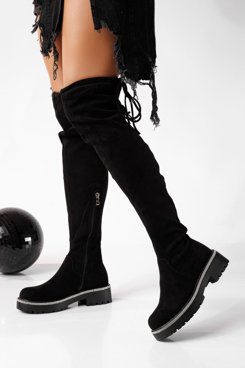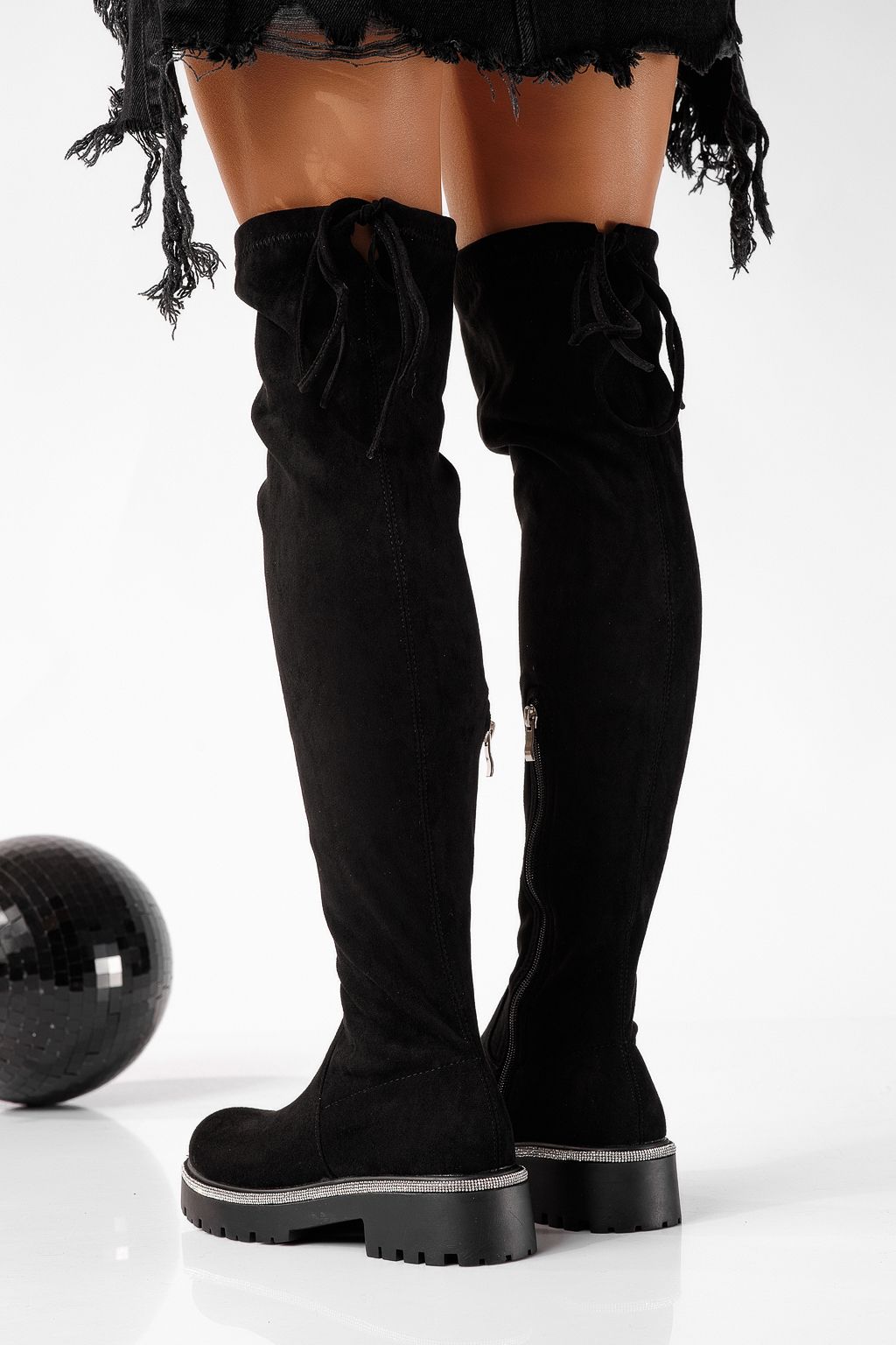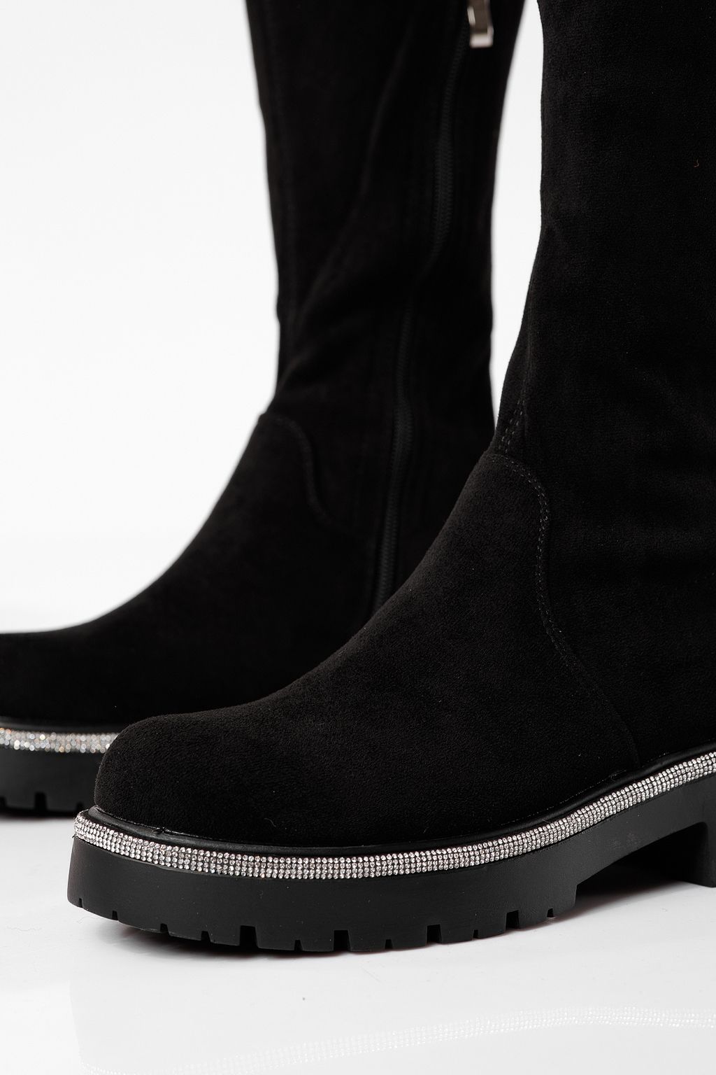 Cizme lungi dama vatuite negre din piele ecologica intoarsa Marina #22714