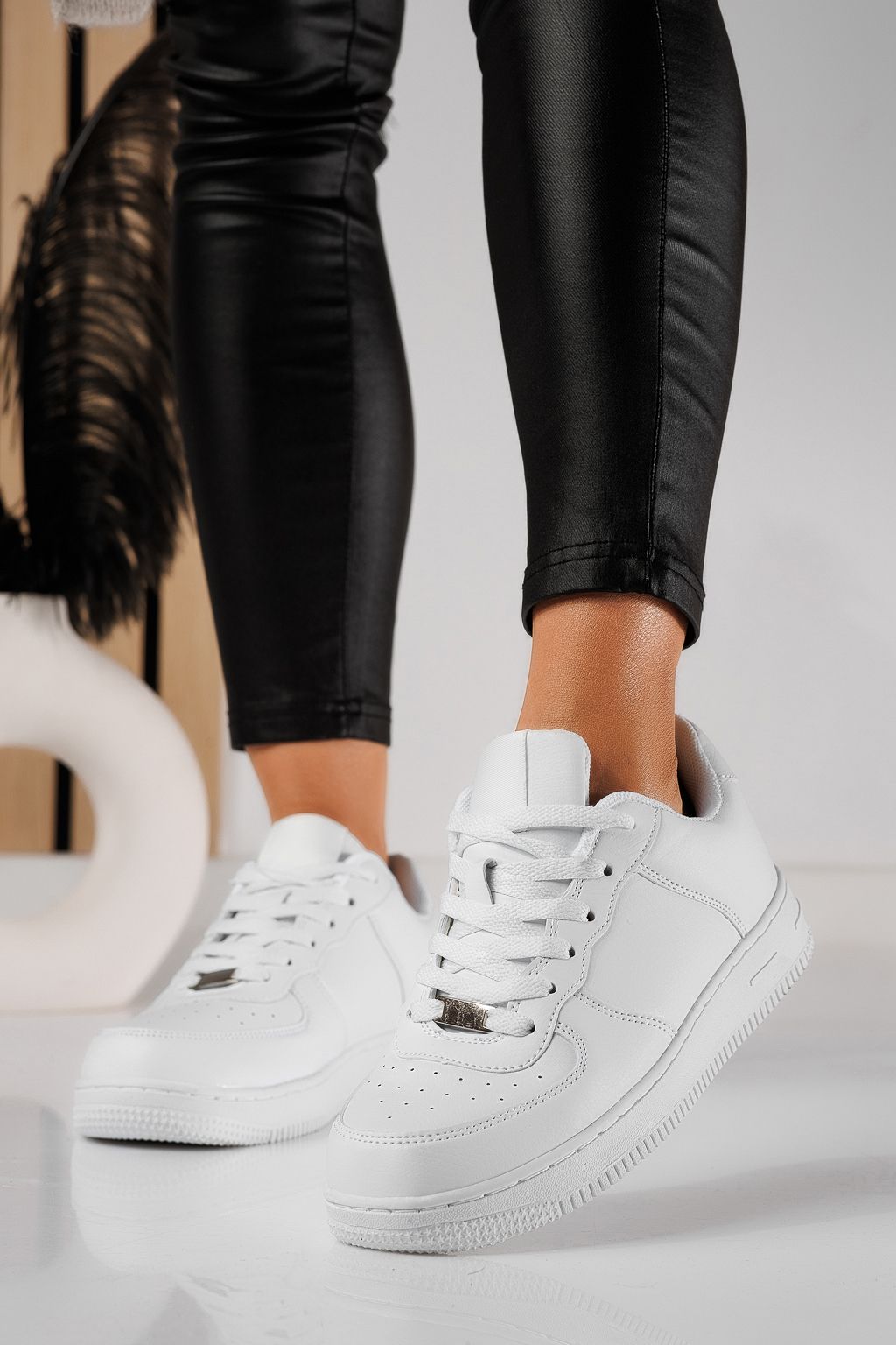 Adidasi dama albi din piele ecologica Carla #22719