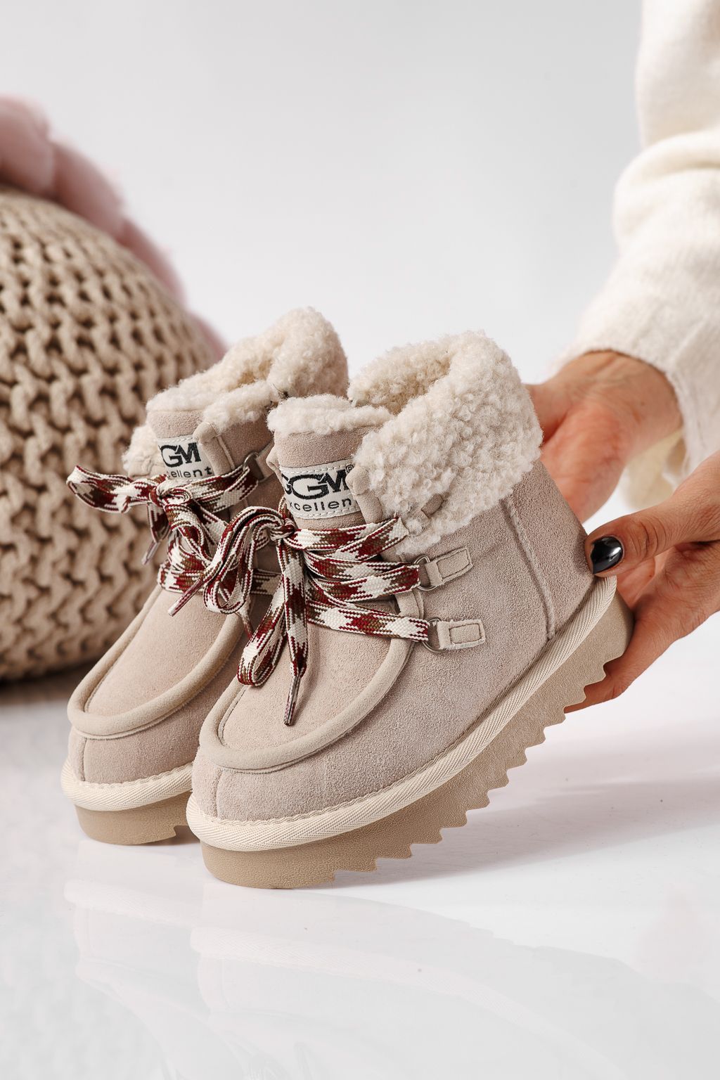 Ghete fete îmblanite bej din piele naturala intoarsa Gloria #22733