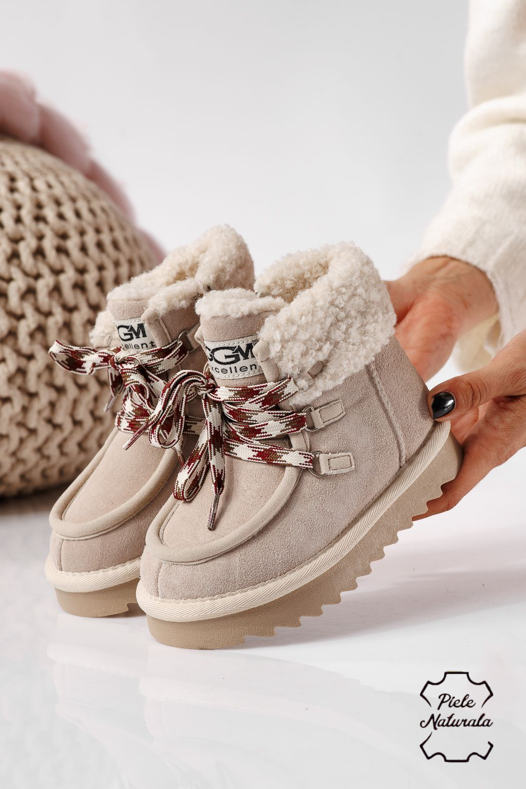 Ghete fete îmblanite bej din piele naturala intoarsa Gloria #22733