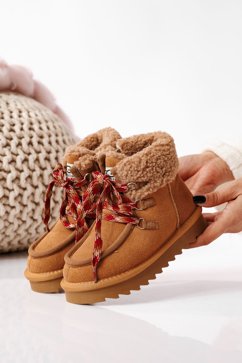 Ghete fete îmblanite maro din piele naturala intoarsa Gloria #22738