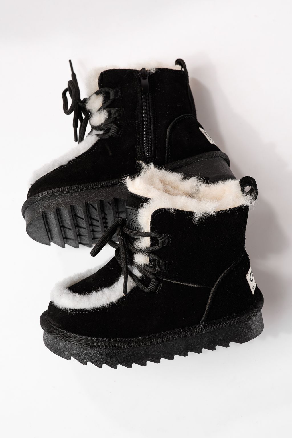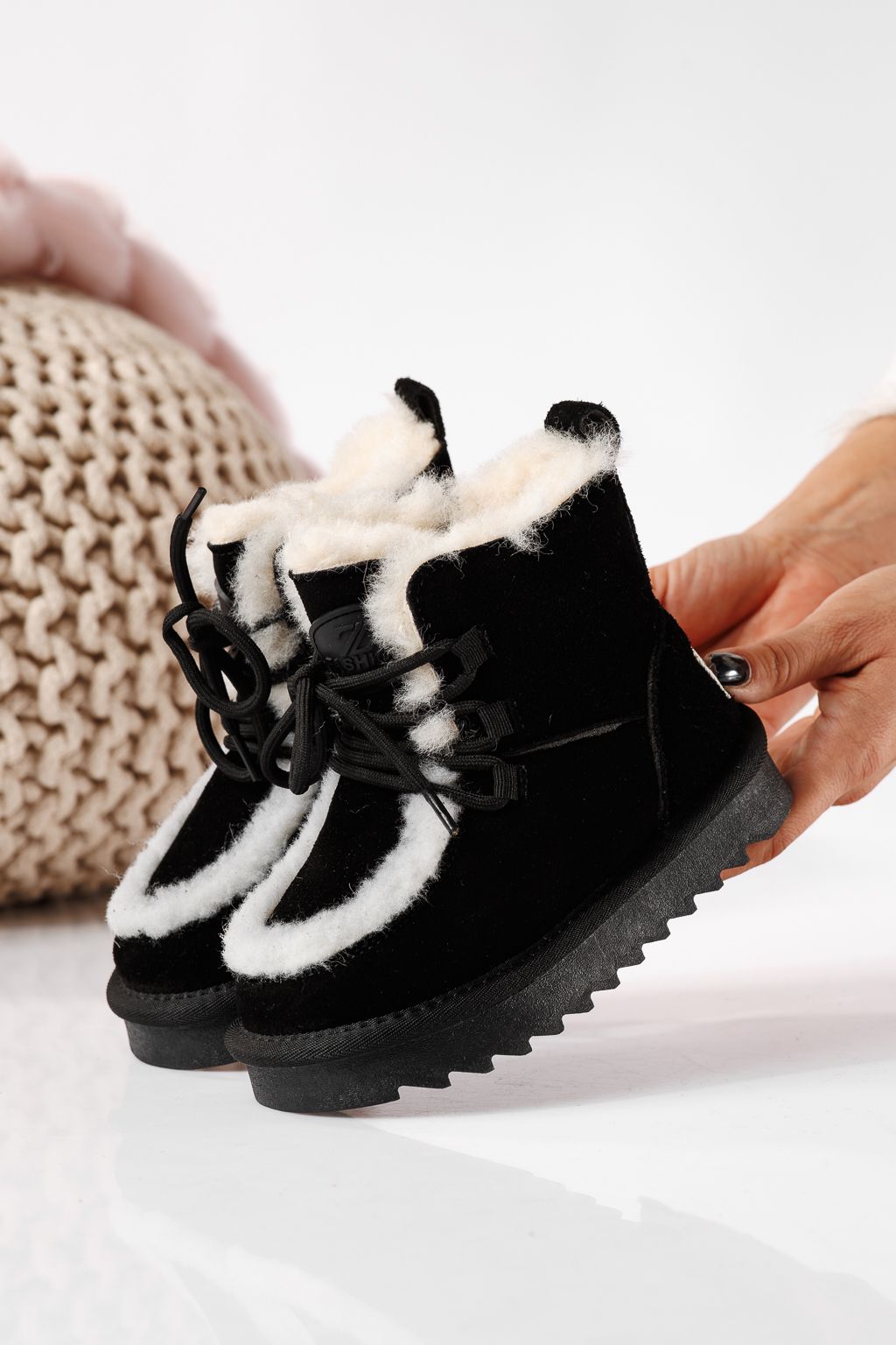 Prima pagină Incaltaminte dama Incaltaminte Copii Ghete copii Ghete fete îmblanite negre din piele naturala intoarsa Ilina #22740