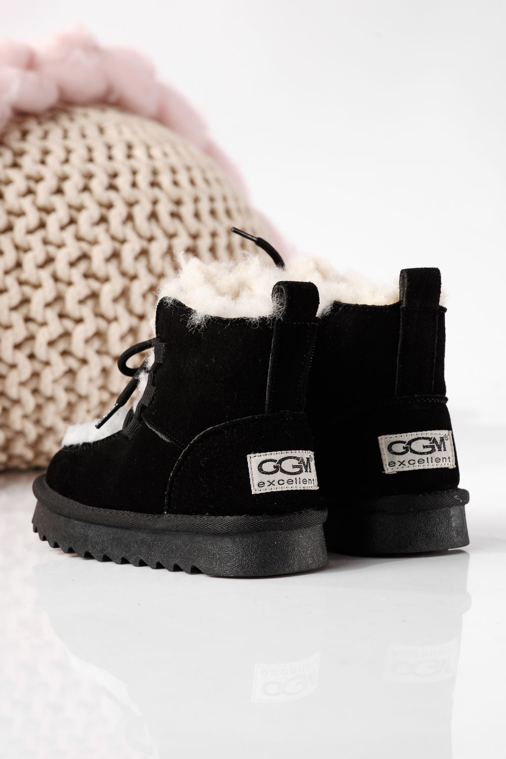 Ghete fete îmblanite negre din piele naturala intoarsa Ilina #22740