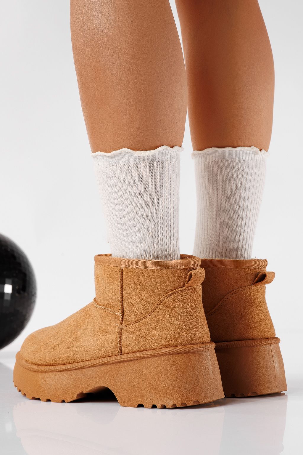 Cizme scurte dama imblanite tip Ug maro din piele ecologica intoarsa Aurora #22745