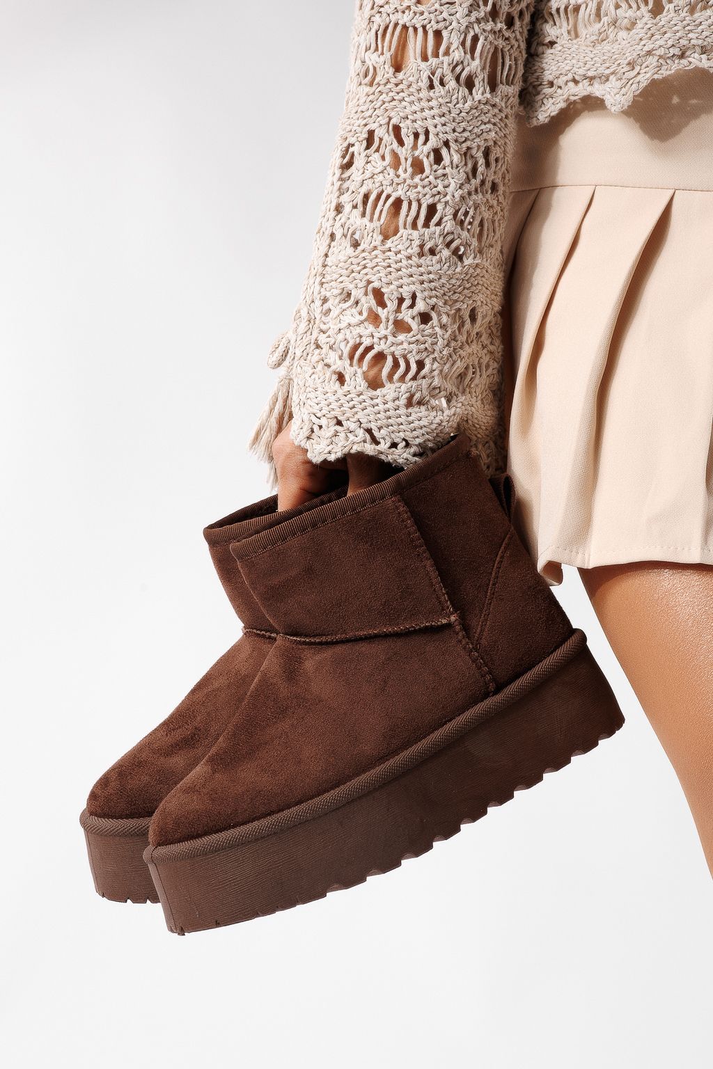 Cizme scurte dama imblanite tip Ug maro din piele ecologica intoarsa Ariana #22749