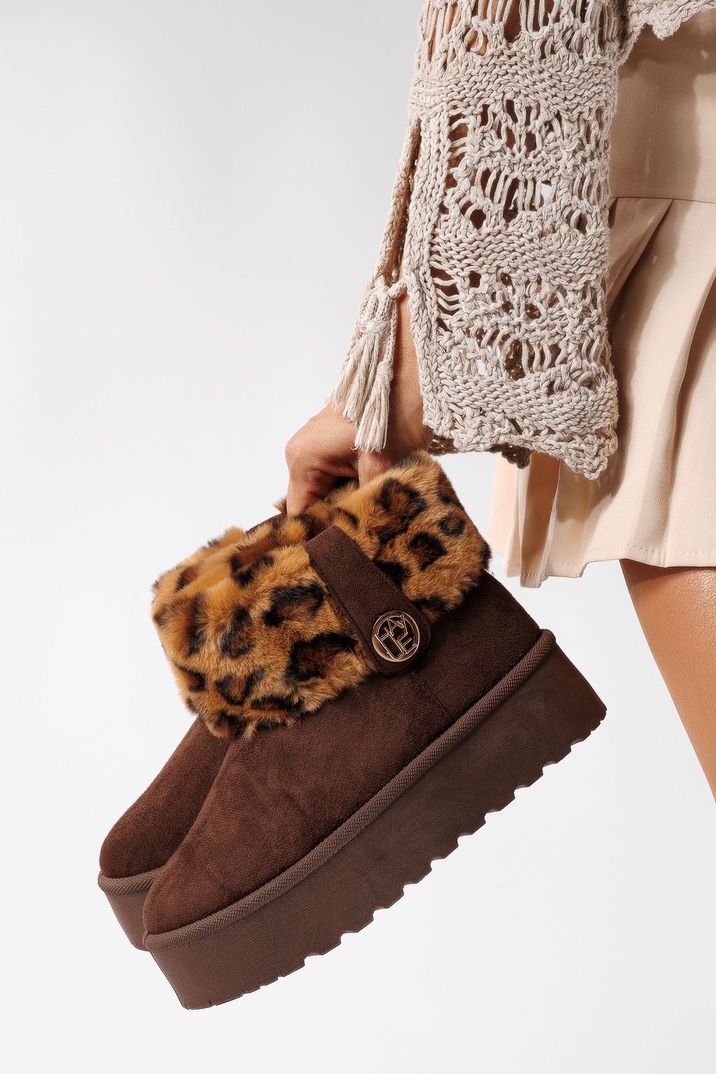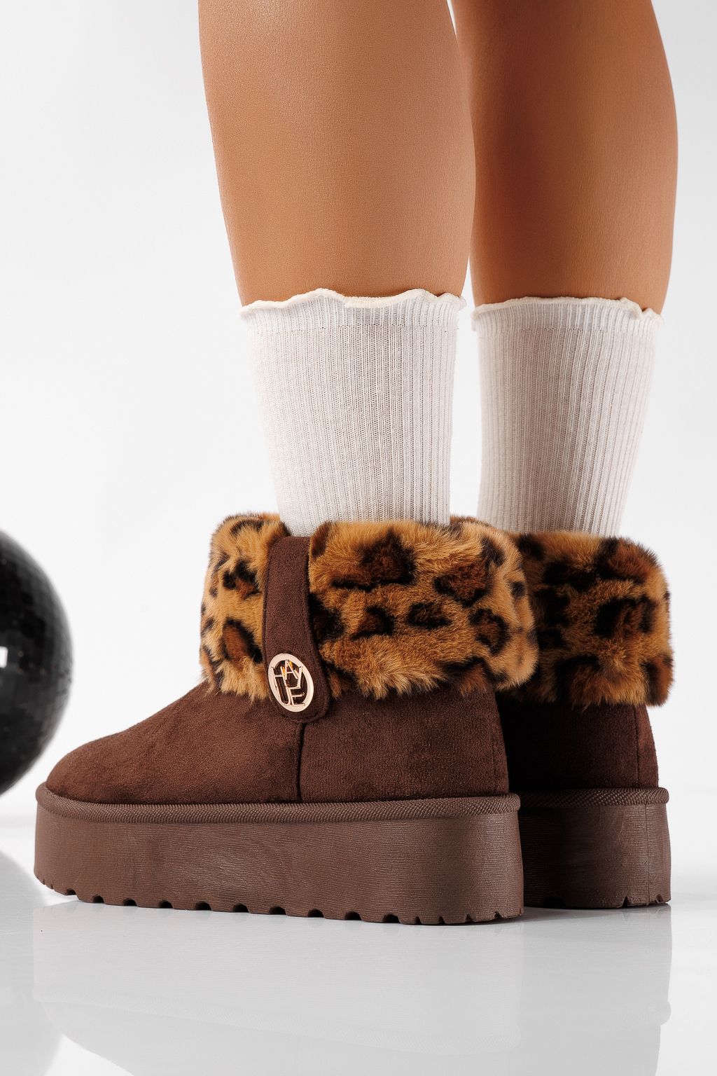 Cizme scurte dama îmblanite tip Ug maro din piele ecologica intoarsa Beatrice#22761