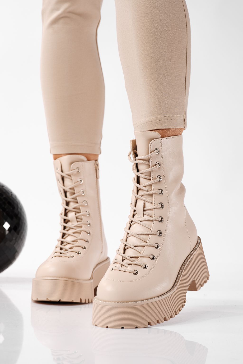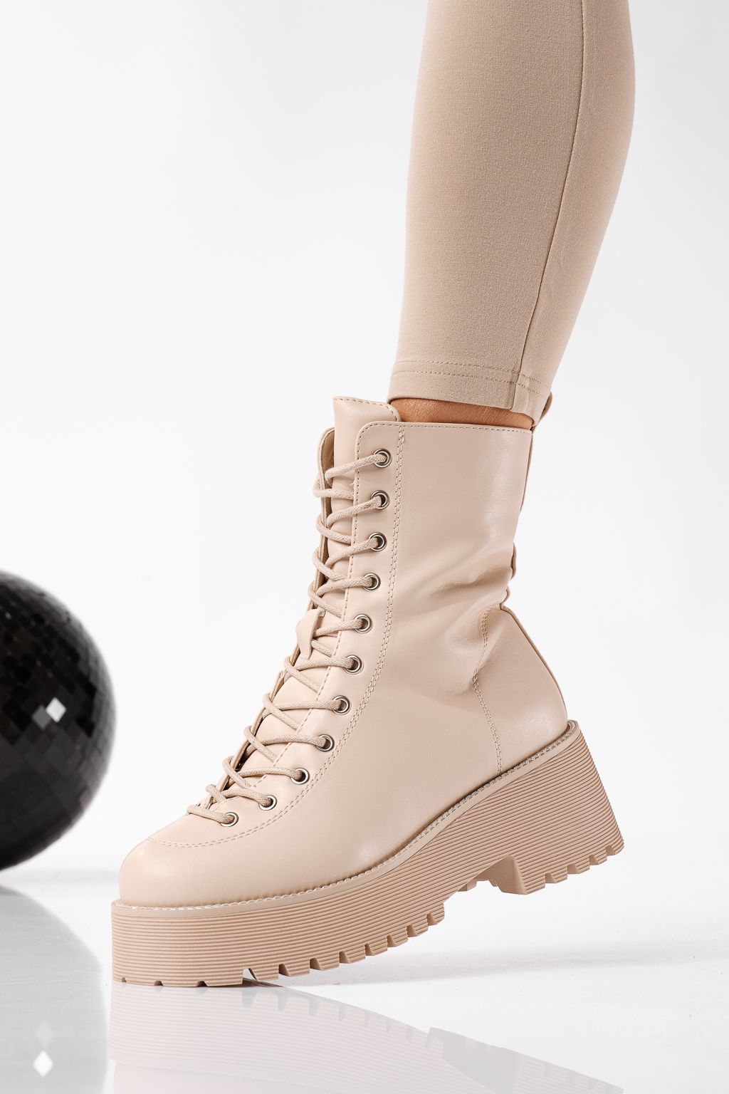 Ghete dama îmblanite bej din piele ecologica Ellis #22772