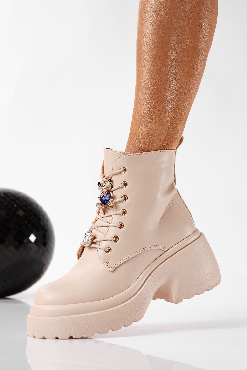 Ghete dama îmblanite bej din piele ecologica June #22778