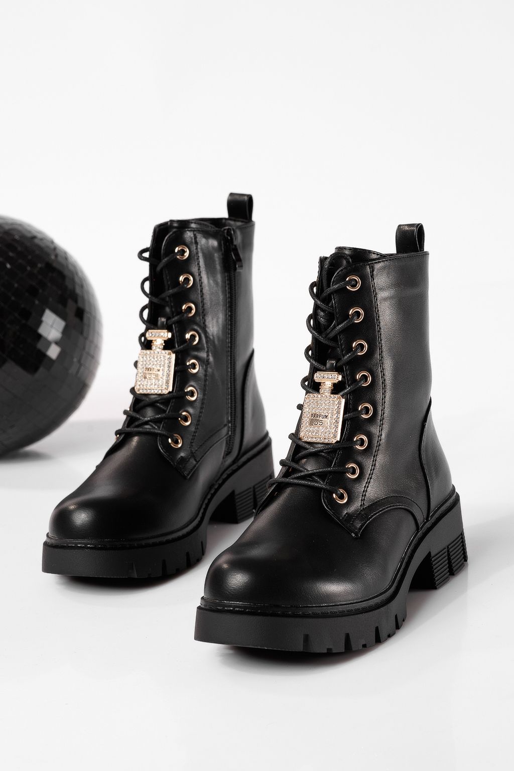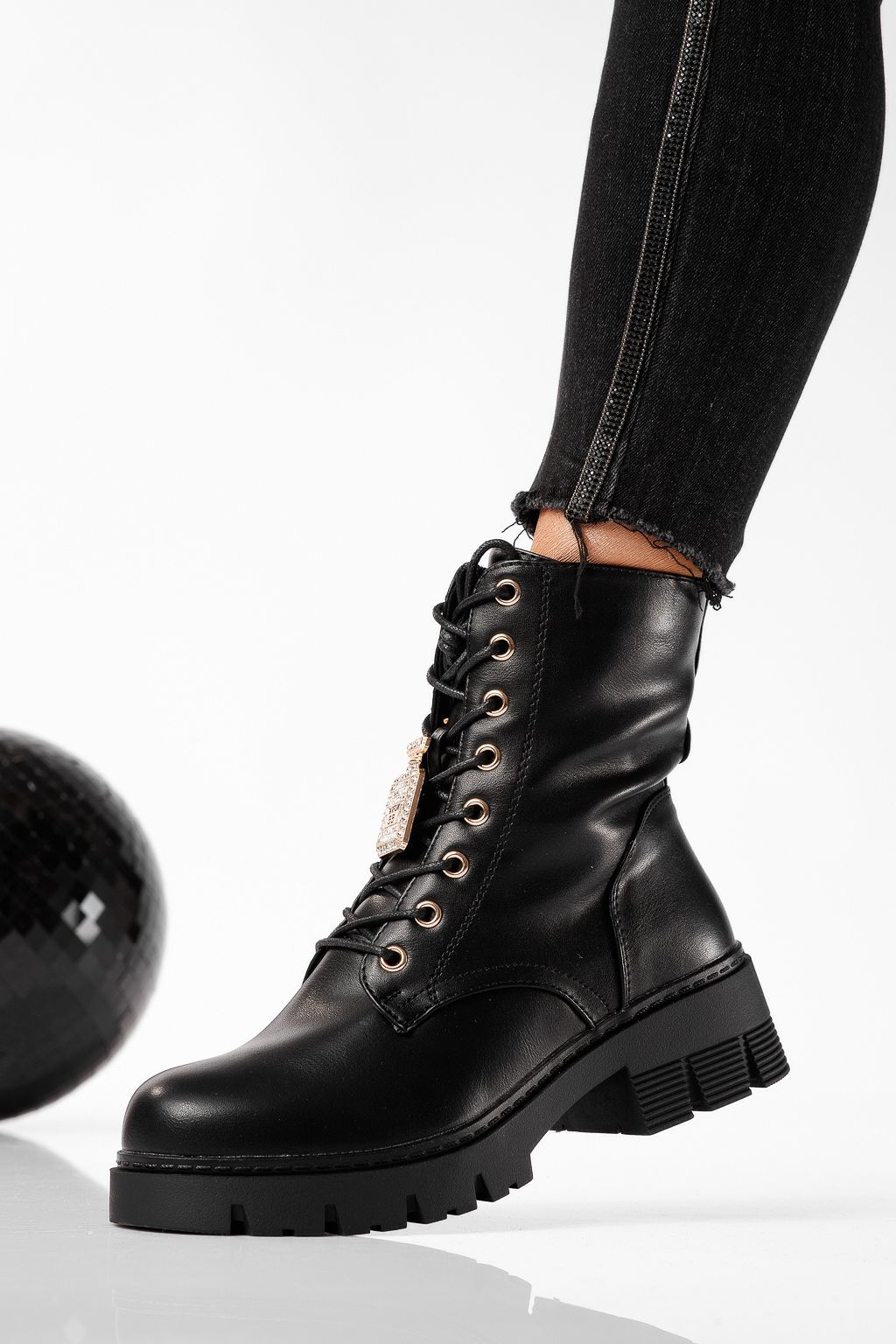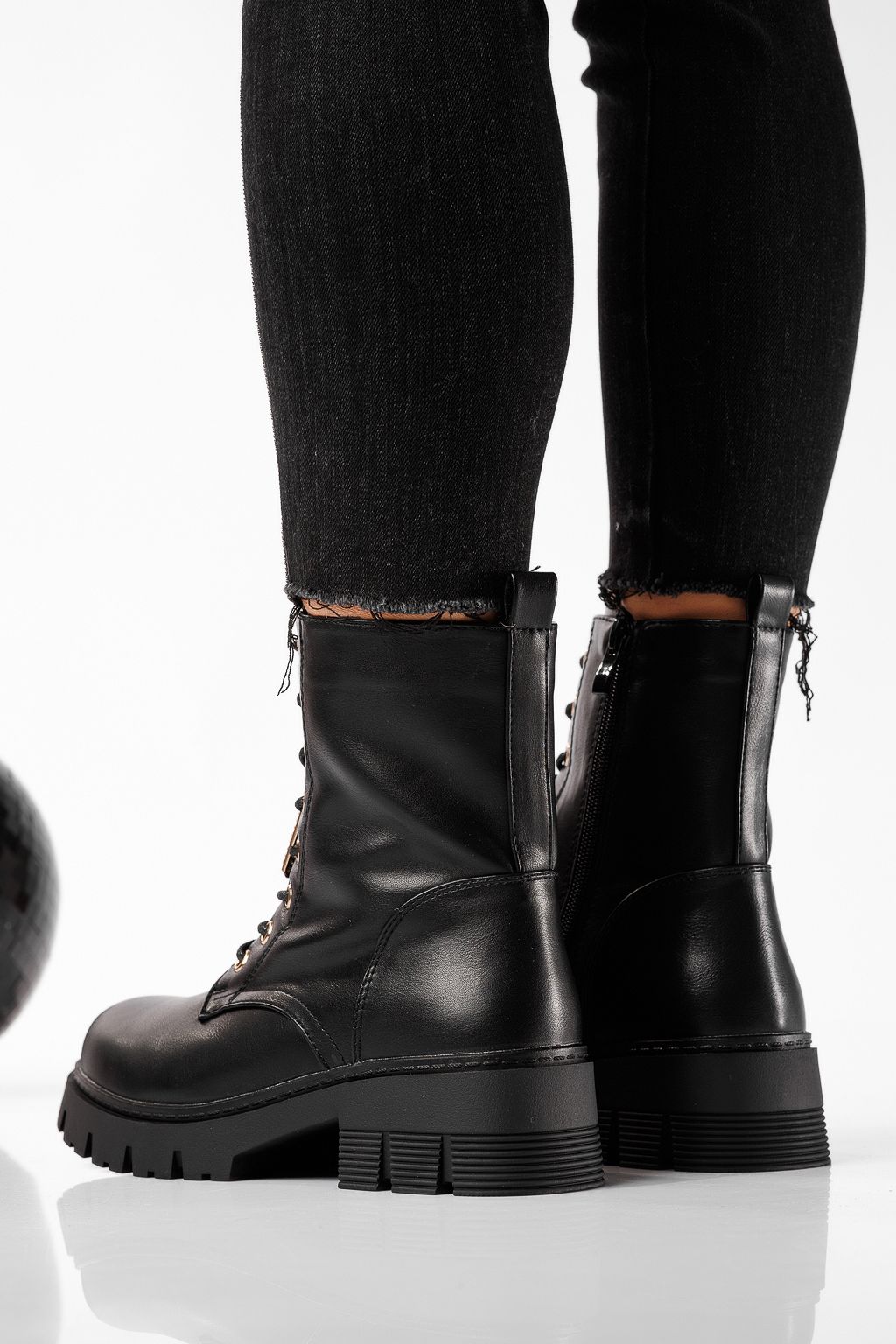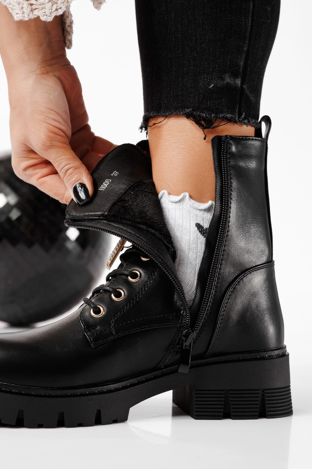 Ghete dama îmblanite negre din piele ecologica Lydia #22781