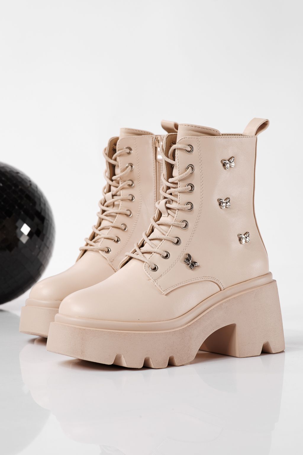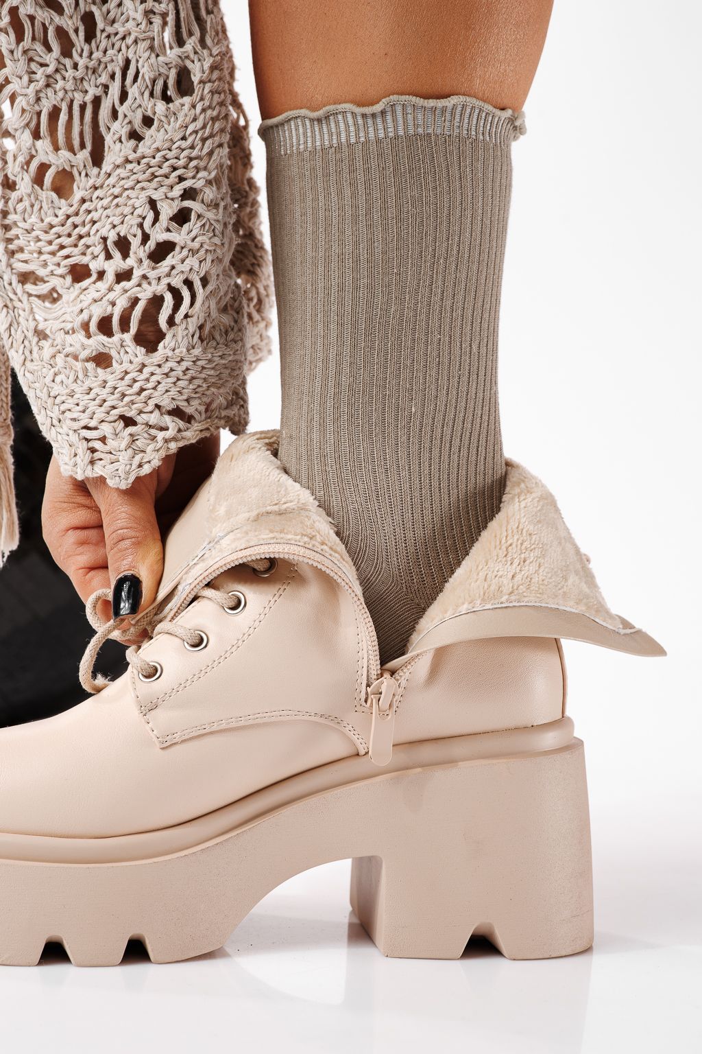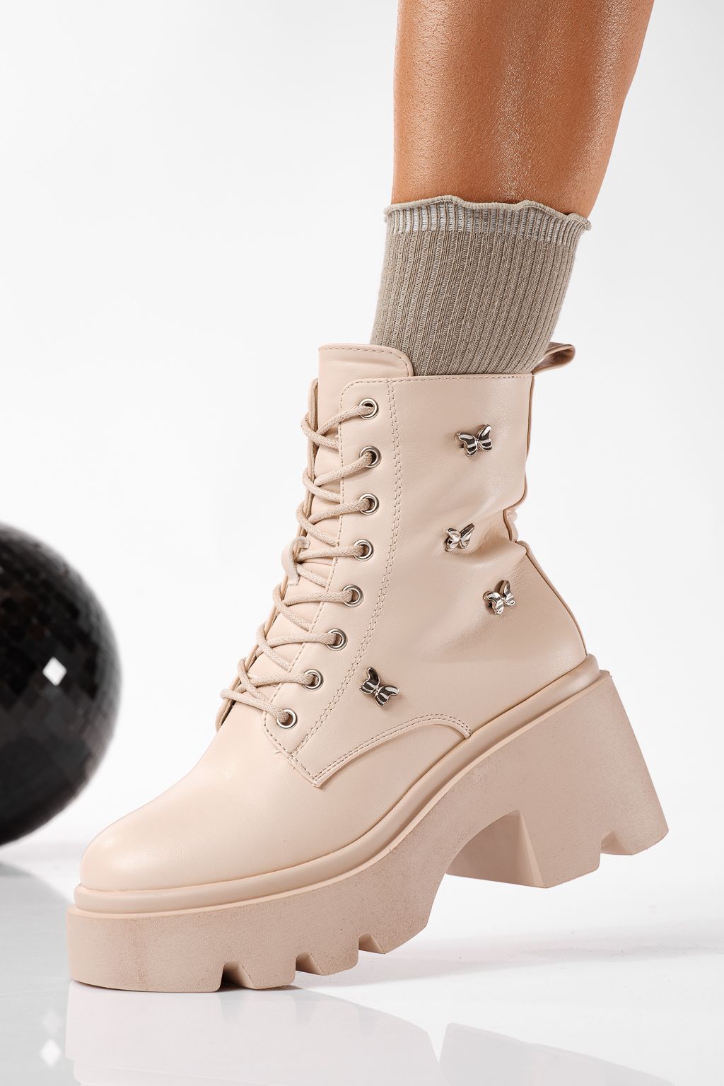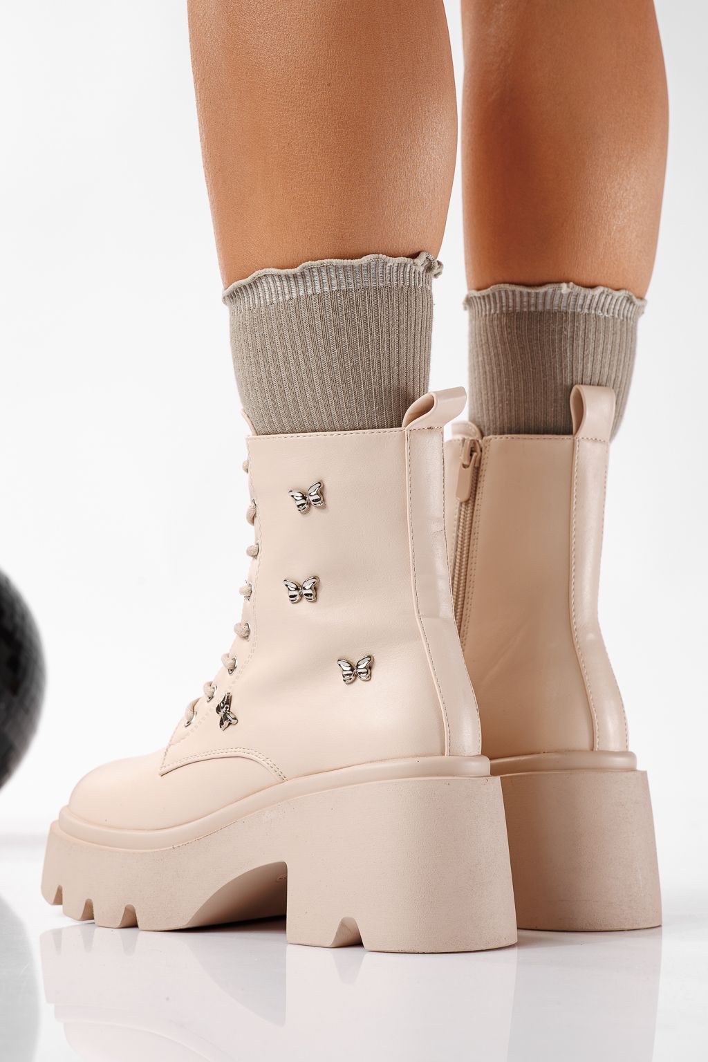 Ghete dama îmblanite bej din piele ecologica Olivia #22789