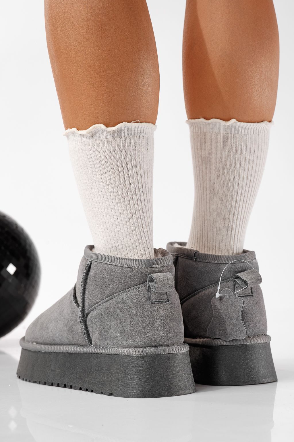 Cizme scurte dama îmblanite tip Ug gri din piele naturala intoarsa Flori #22802