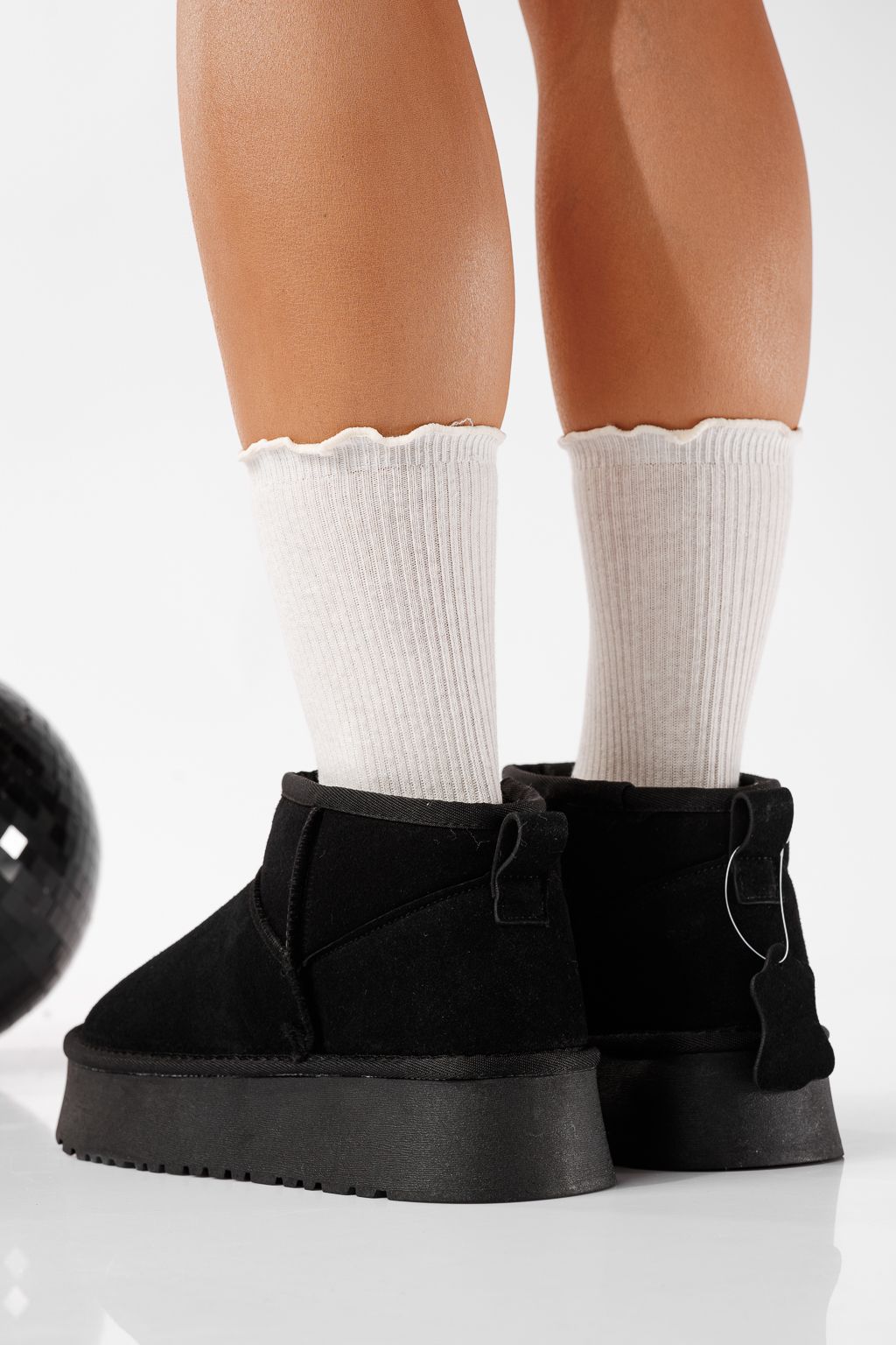 Cizme scurte dama îmblanite tip Ug negre din piele naturala intoarsa Flori #22805