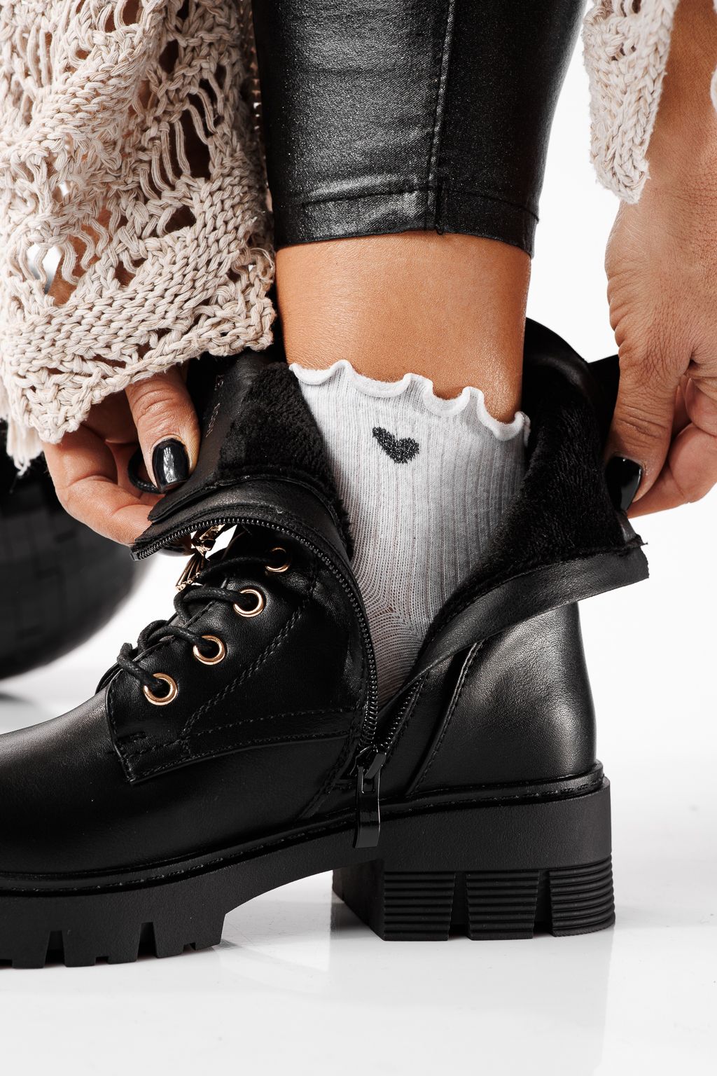 Ghete dama îmblanite negre din piele ecologica Lumi #22808