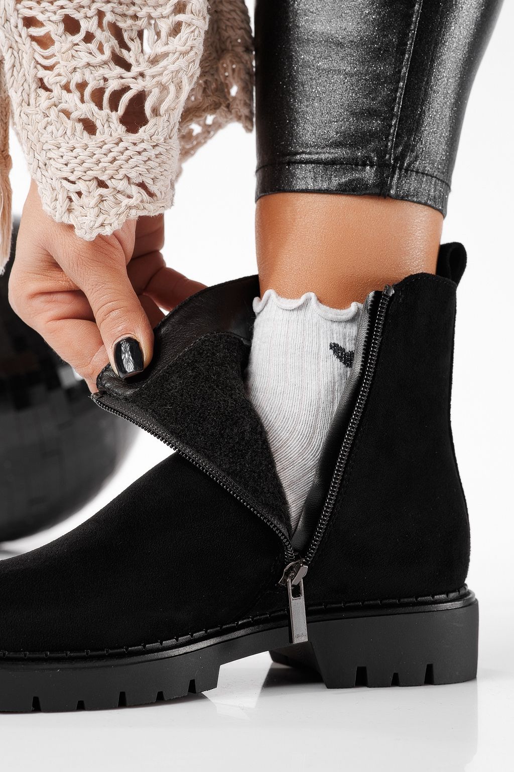 Ghete dama îmblanite negre din piele ecologica intoarsa Amira #22814