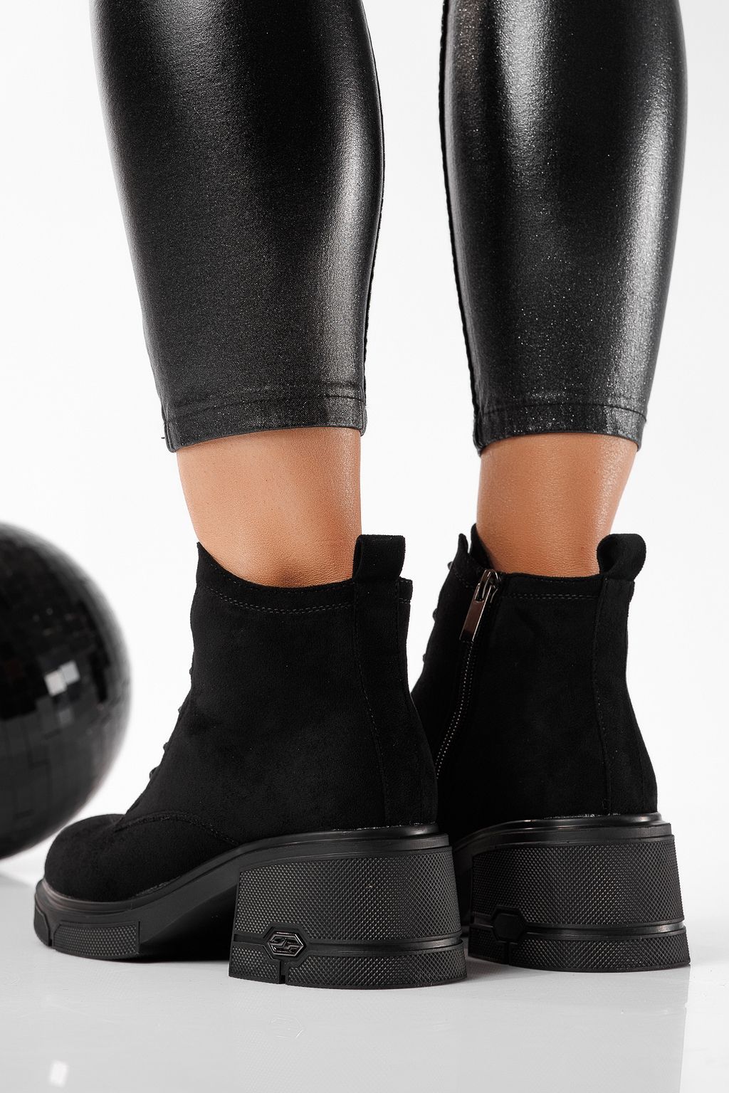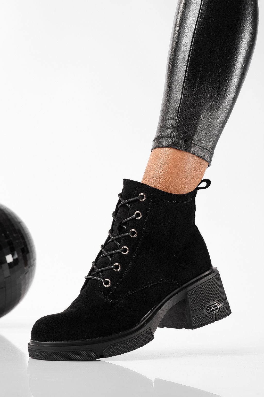Ghete dama îmblanite negre din piele ecologica intoarsa Aryan #22821