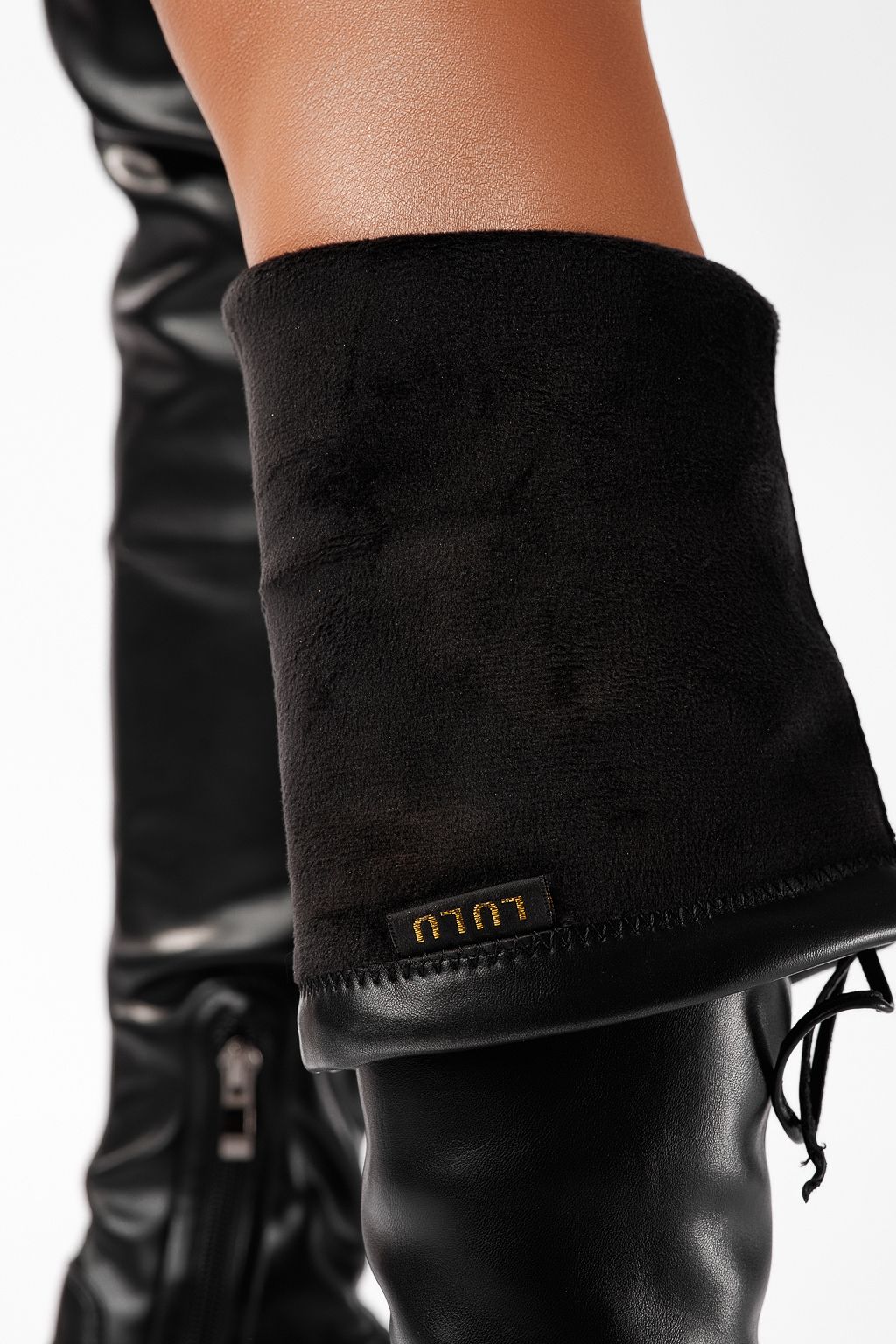 Cizme lungi dama îmblanite negre din piele ecologica Brook #22831