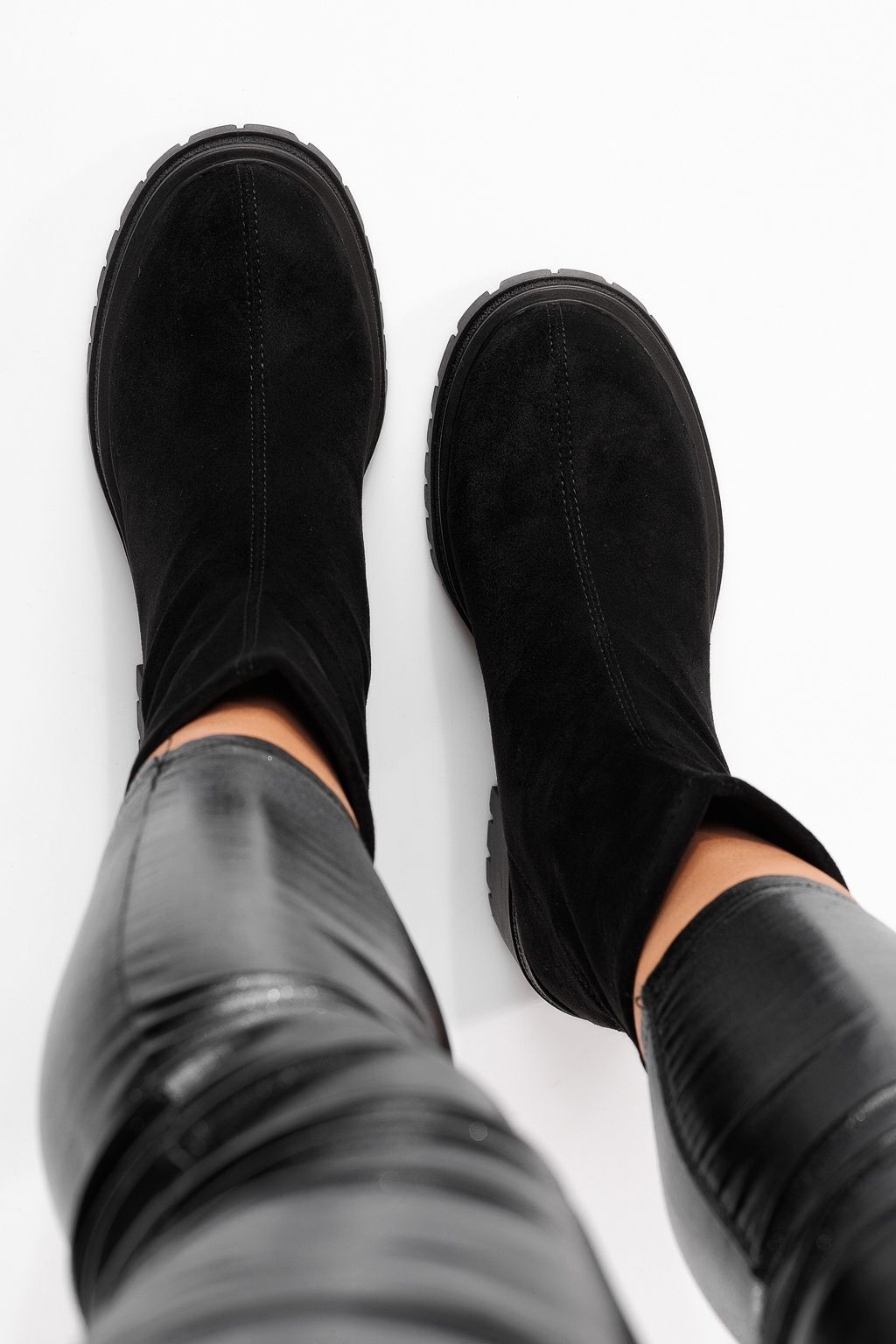 Ghete dama îmblanite negre din piele ecologica intoarsa Calypso #22832