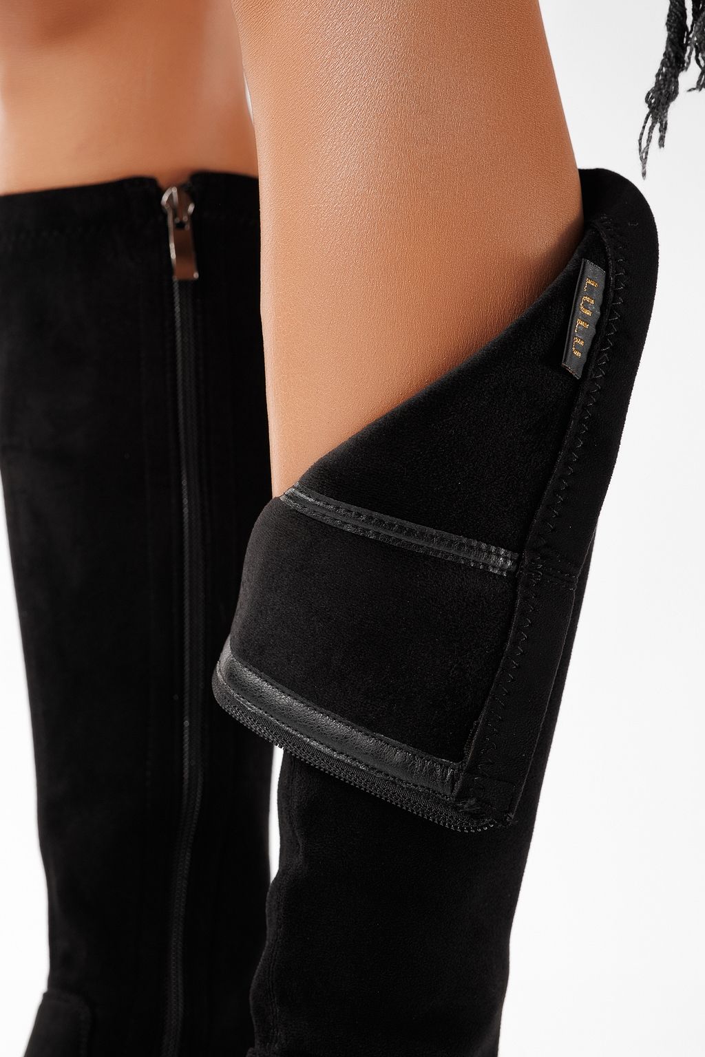 Cizme scurte dama îmblanite negre din piele ecologica intoarsa Isabel #22864