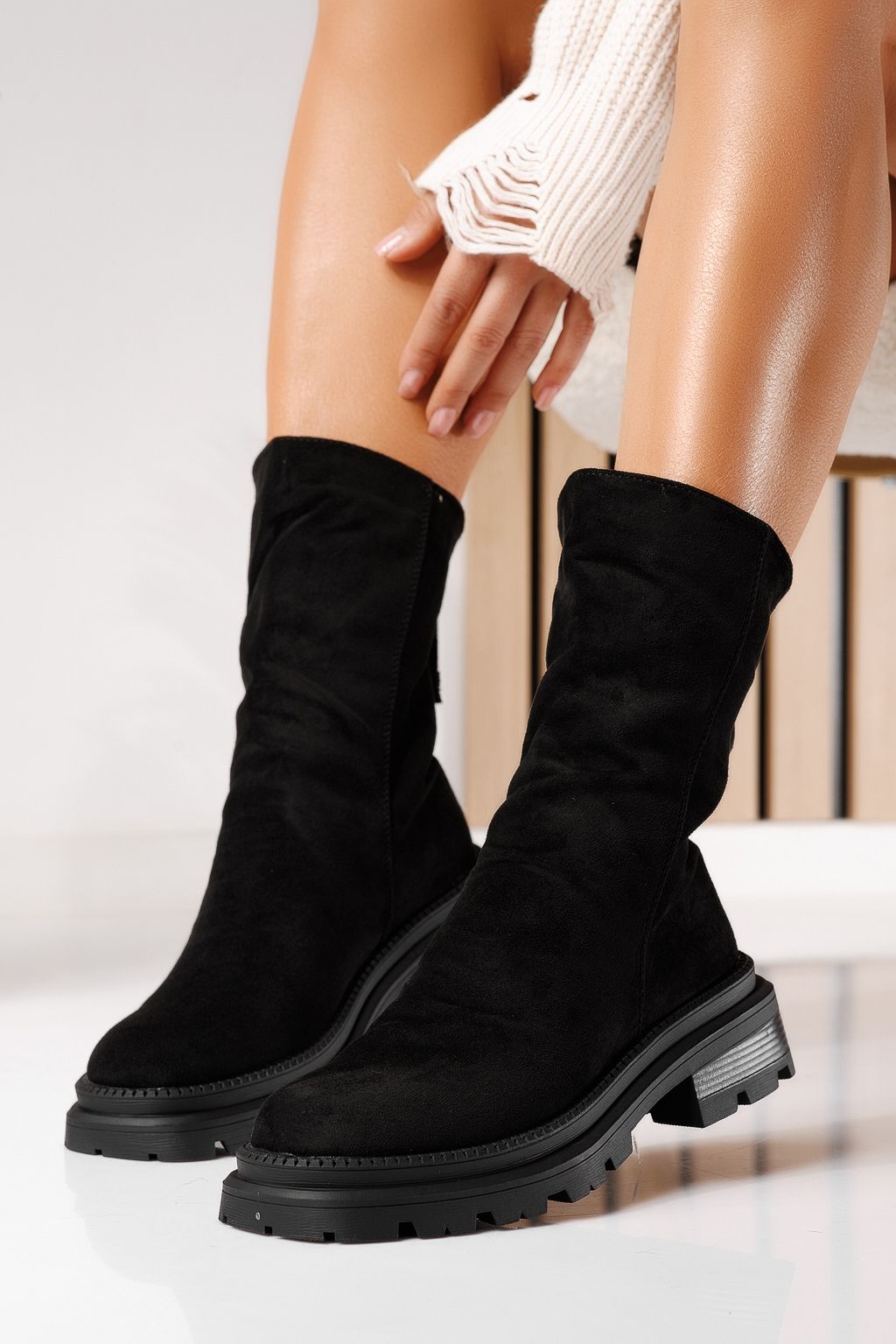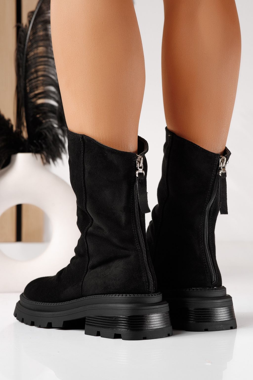 Ghete dama vatuite negre din piele ecologica intoarsa Flavia #22915