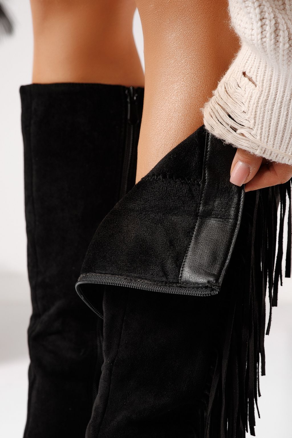 Cizme scurte dama vatuite negre din piele ecologica intoarsa Carisa #22938