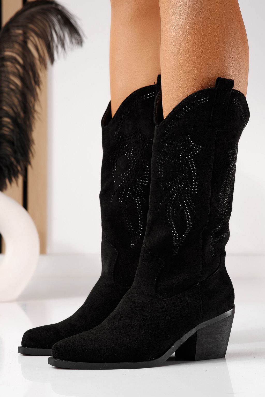 Prima pagină Incaltaminte dama Cizme Dama Cizme scurte Ciocate dama captusite negre din piele ecologica intoarsa Alina #22943