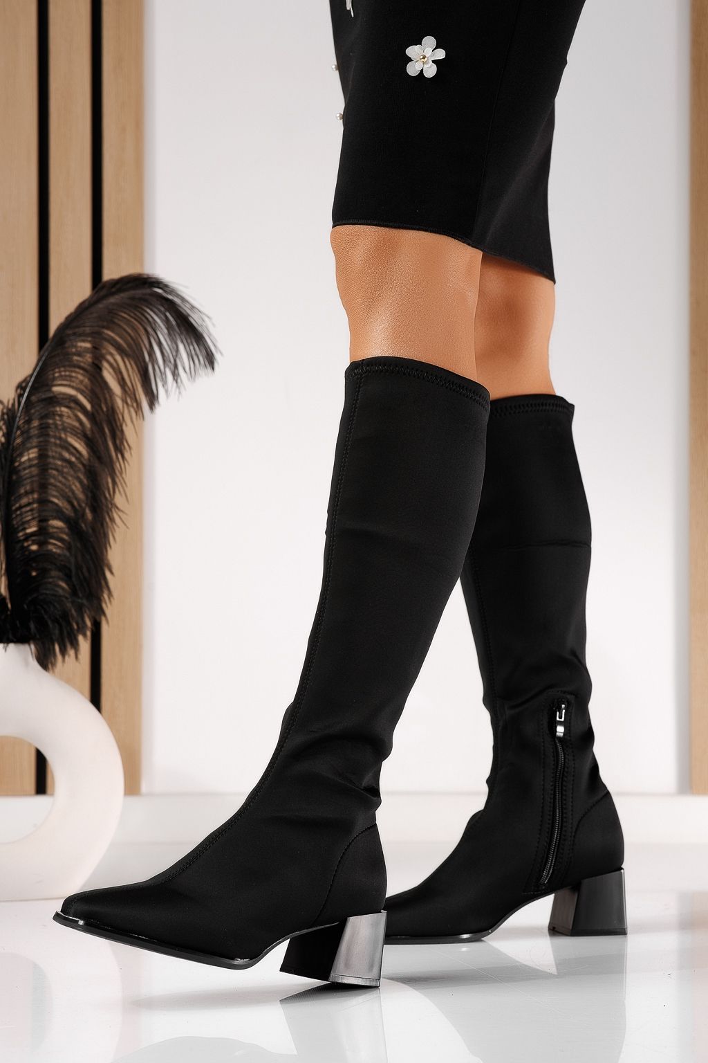 Cizme scurte dama captusite negre din material textil Narcisa #22950
